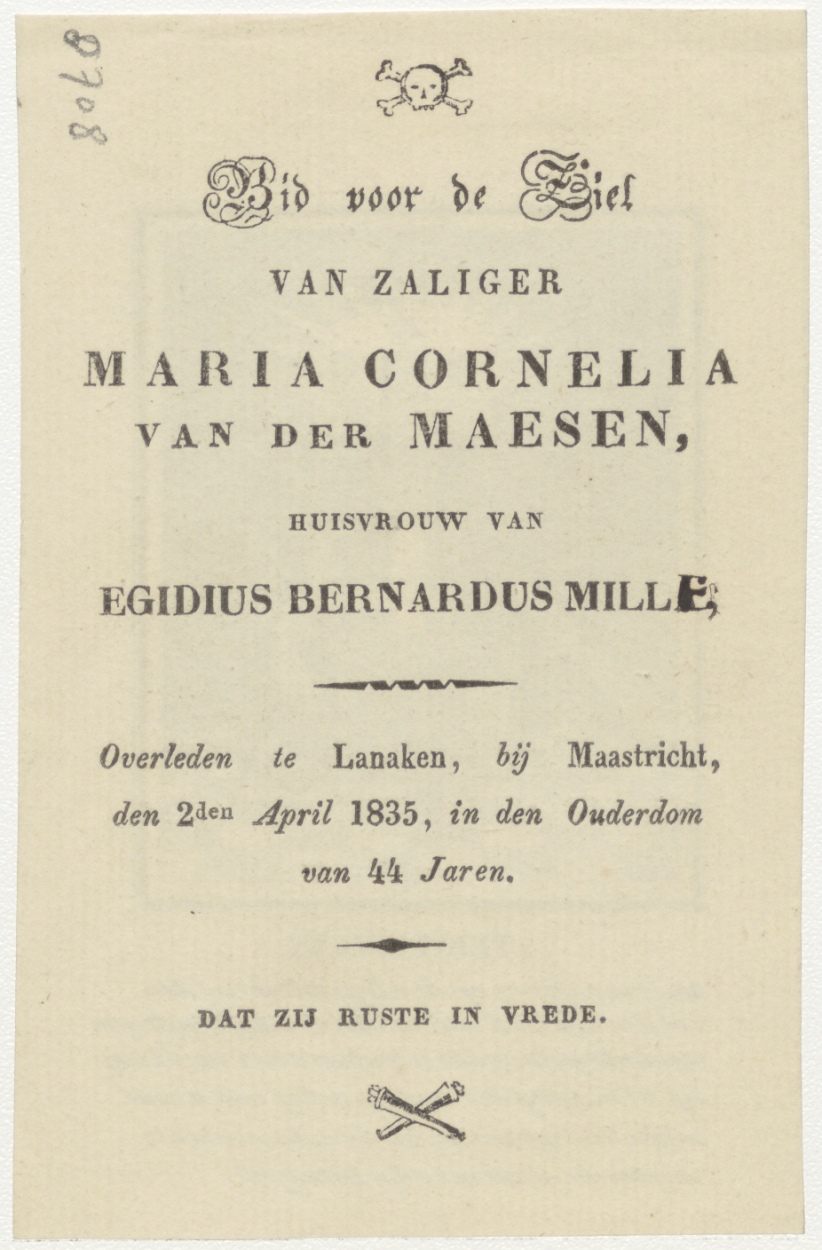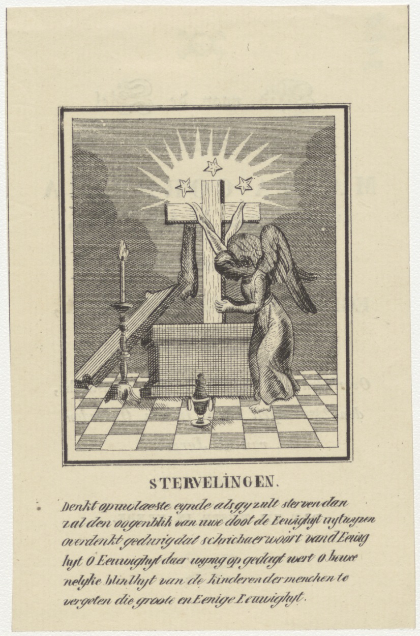 Engel bij sarcofaag, stervelingen, kz. Bid voor ziel Mille-van der Maesen (+1835) Lanaken bij Maastricht