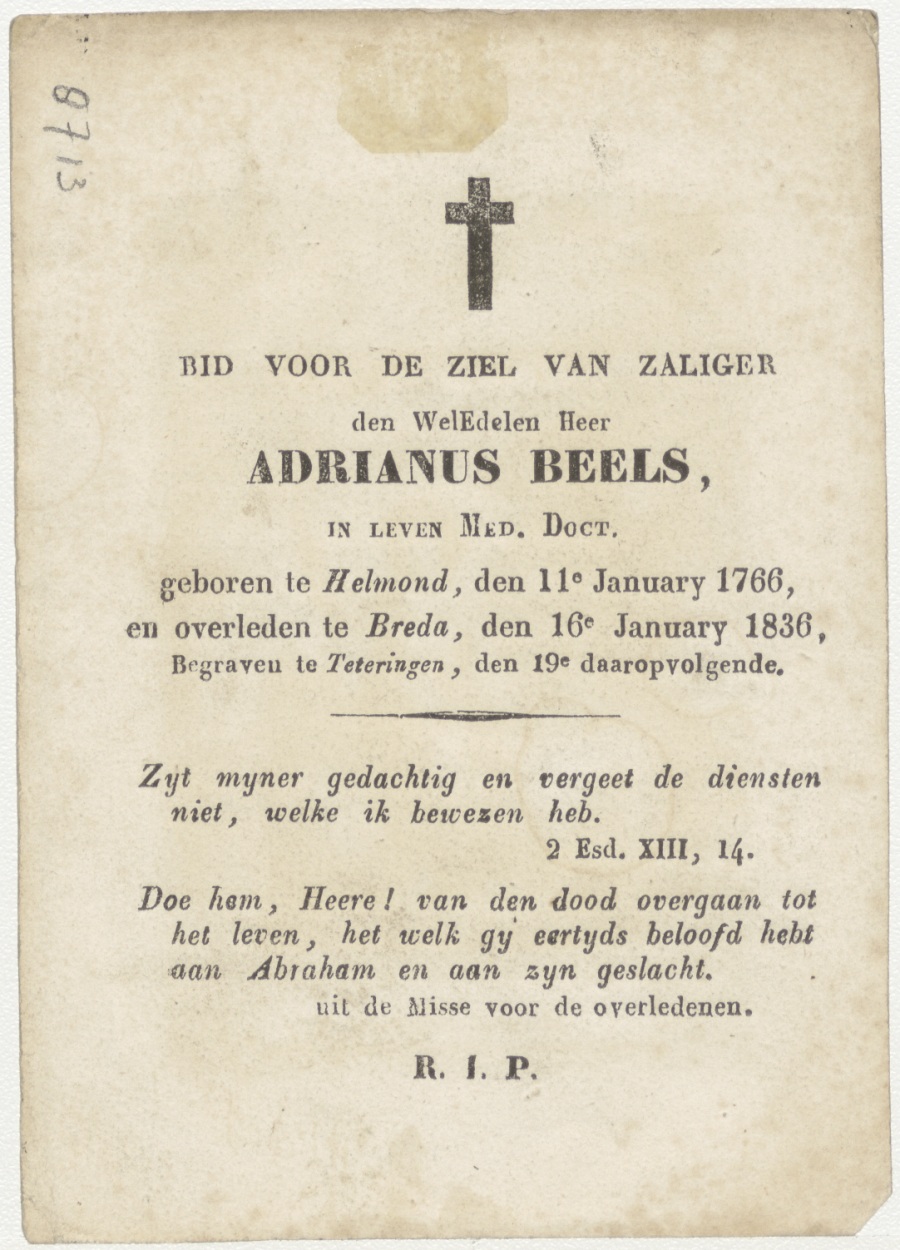 Christus Goede Herder (Frans), kz. Bid voor ziel Beels (+1836) Breda