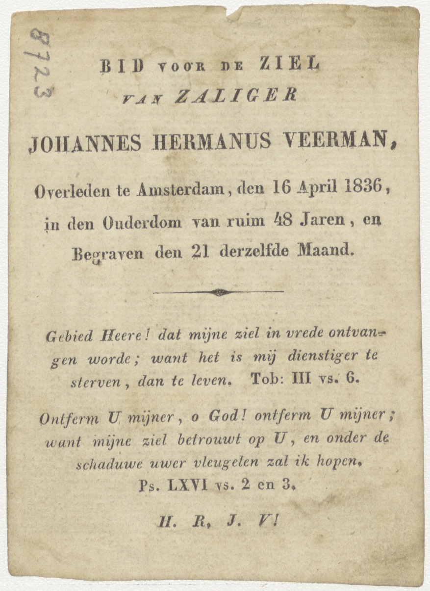 H. Engelmundus, kz. Bid voor ziel Veerman (+1836) Amsterdam