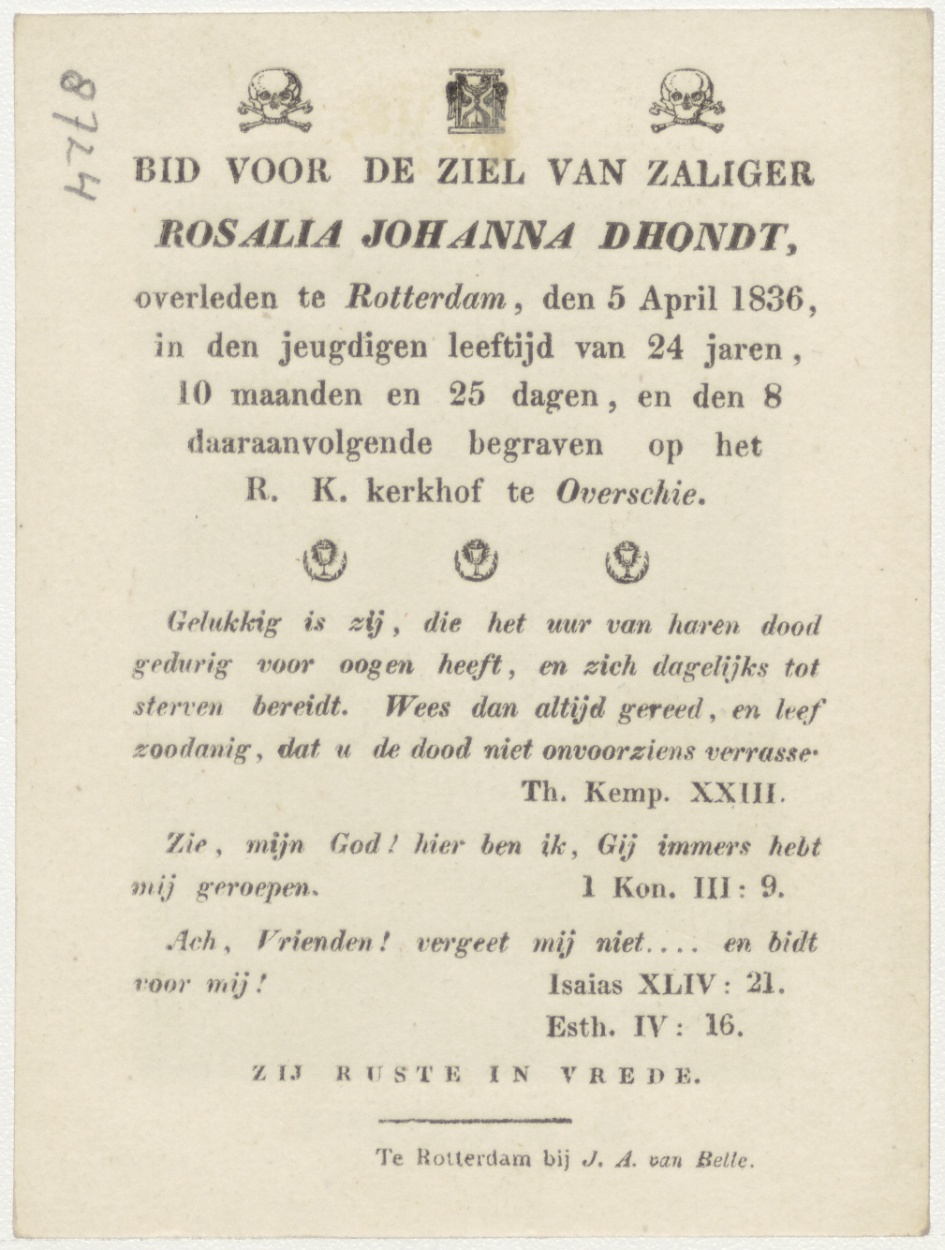 H. Hilarius, kz. Bid voor ziel Dhont (+1836) Rotterdam