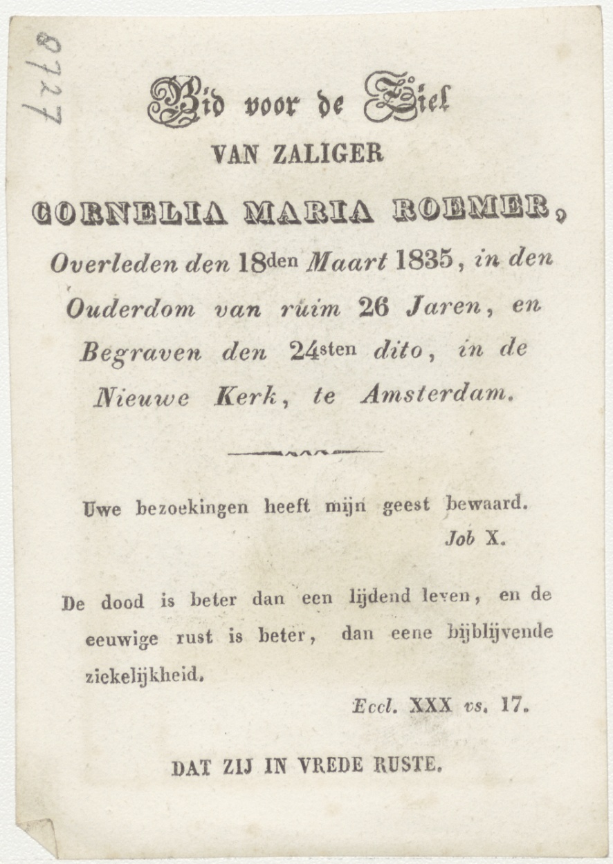H. Sophie, kz. Bid voor ziel Roemer (+1835) Amsterdam