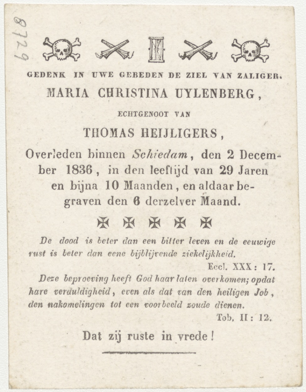 Gekruisigde Christus, zaligmaker der wereld, kz. Bid voor ziel Uylenberg-Heyligers (+1836) Schiedam