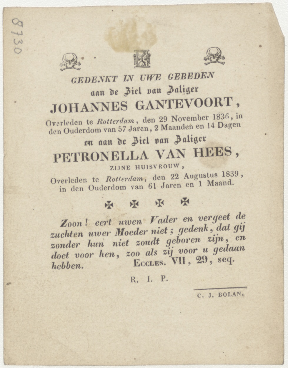 H. Margaretha, kz. Bid voor ziel Gantevoort-van Hees (+1839) Rotterdam, dubbelgebruik