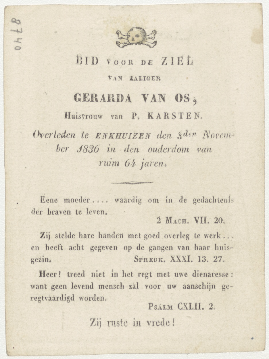 H. Philippus, apostel (Frans), kz. Bid voor ziel Van Os-Karsten (+1836) Enkhuizen