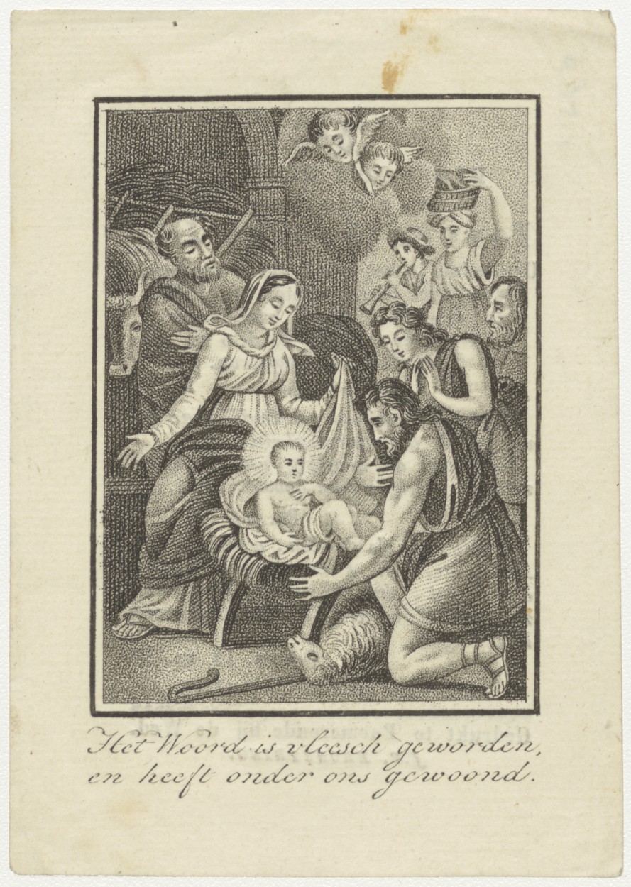 Aanbidding der herders, het woord is vleesch geworden..., kz. Bid voor ziel Jansen (+1836) Enkhuizen