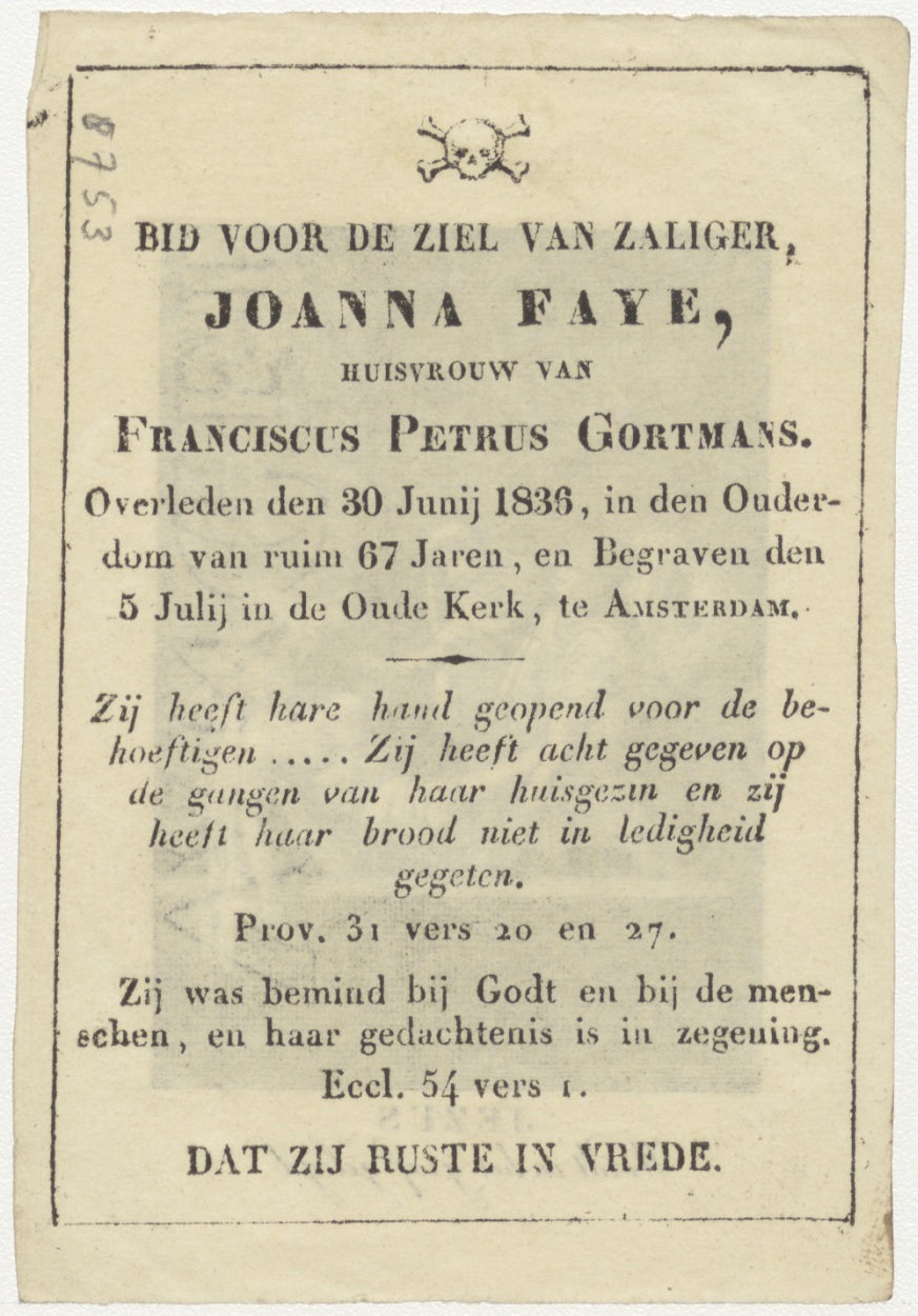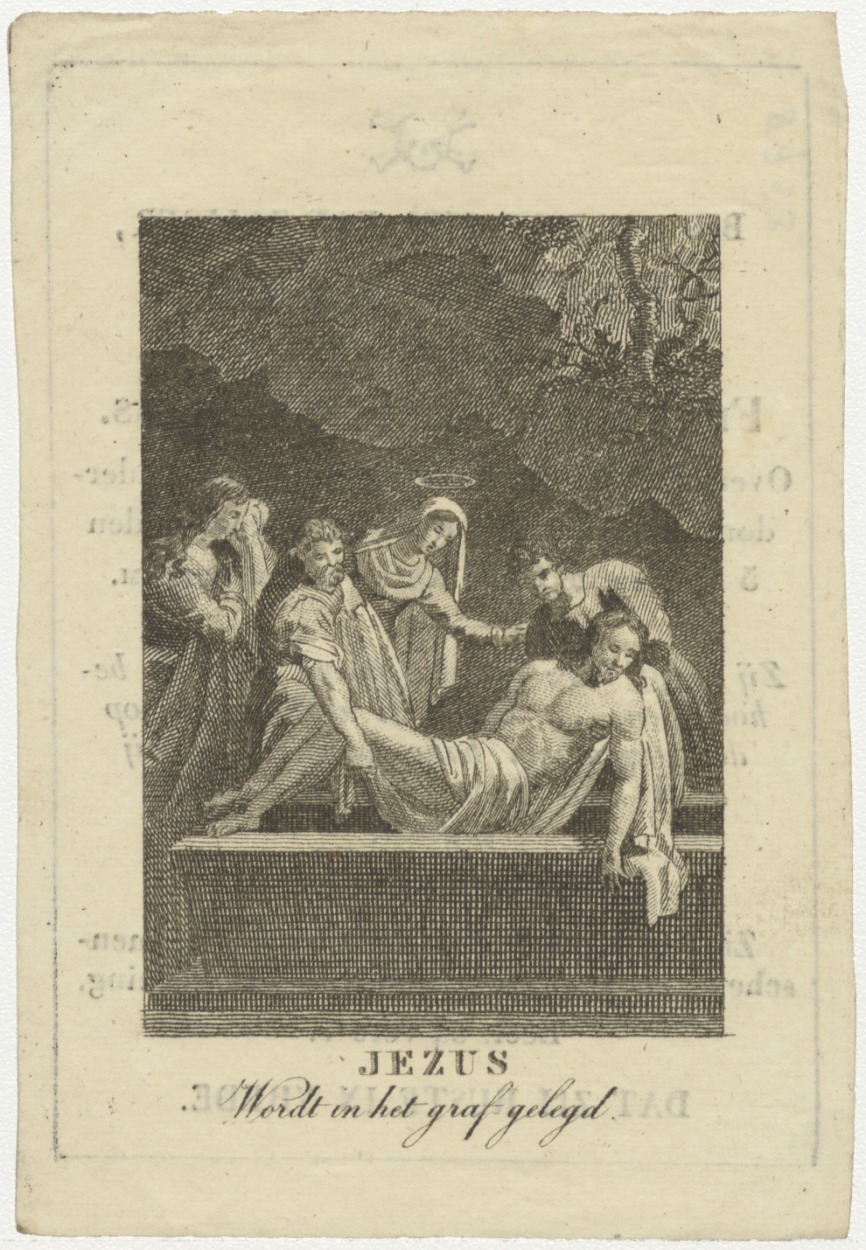 Graflegging van Christus wordt in het graf gelegd, kz. Bid voor ziel Faye-Gortmans (+1836) Amsterdam