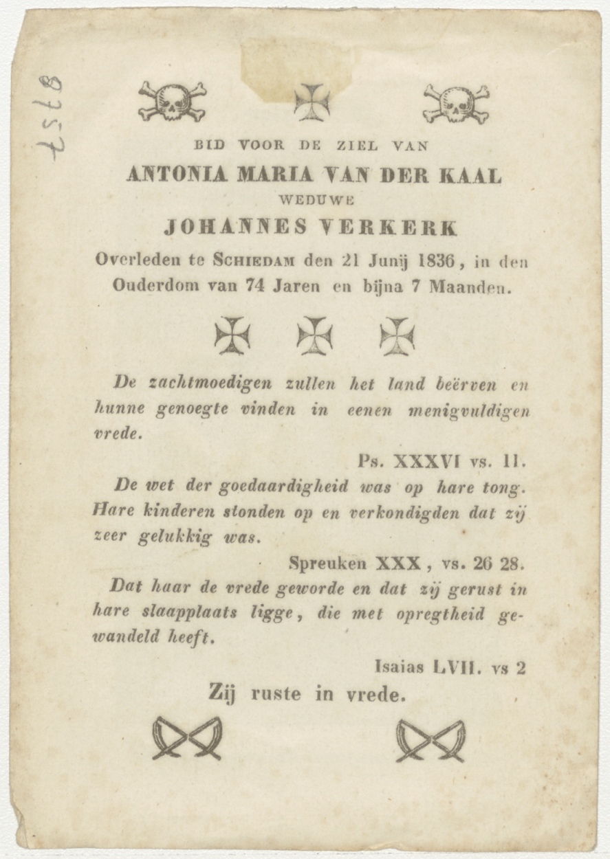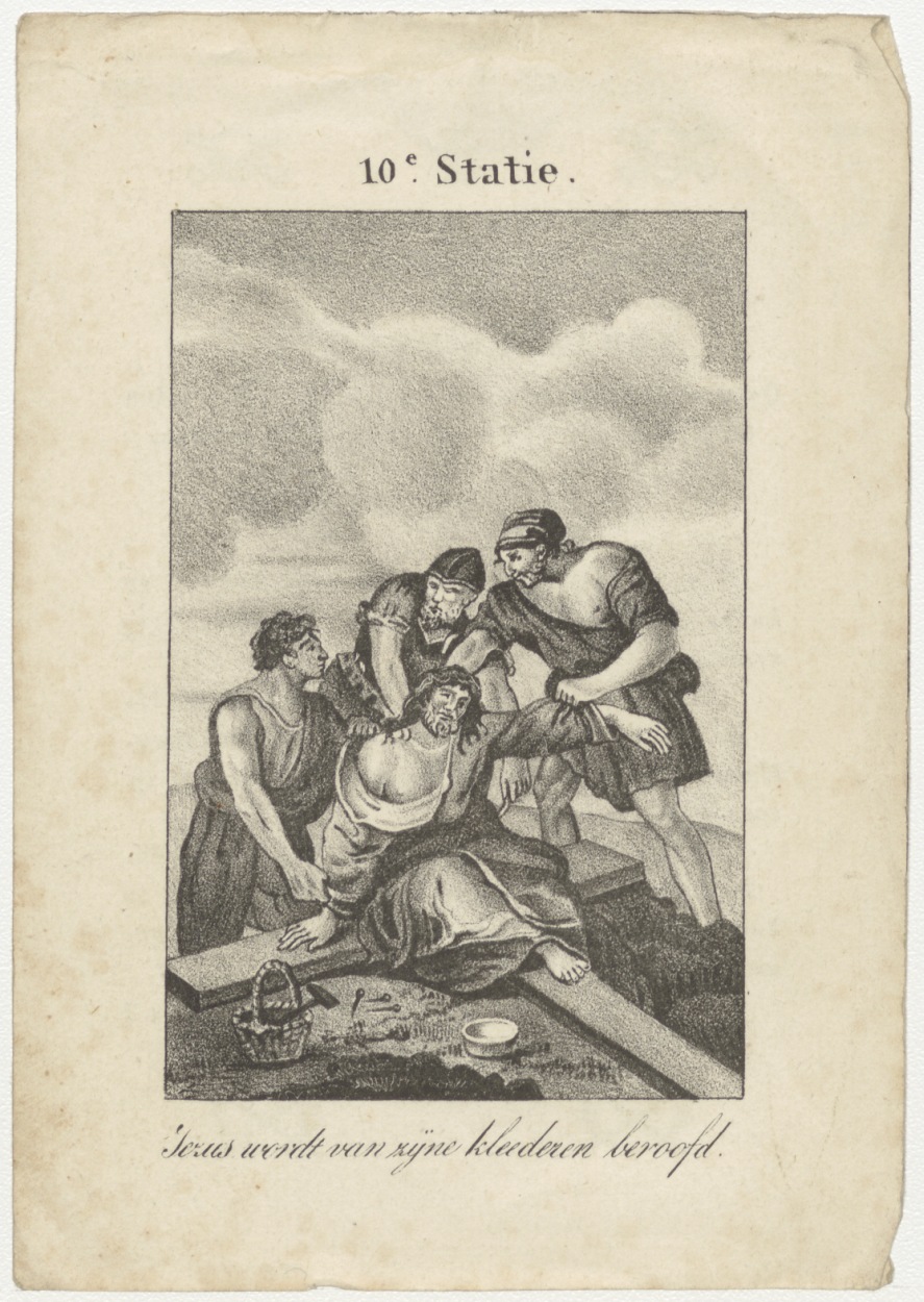 Passiescène (10e statie) Christus wordt van zijn kleederen beroofd, kz. Bid voor ziel Van der Kaal-Verkerk (+1836) Schiedam