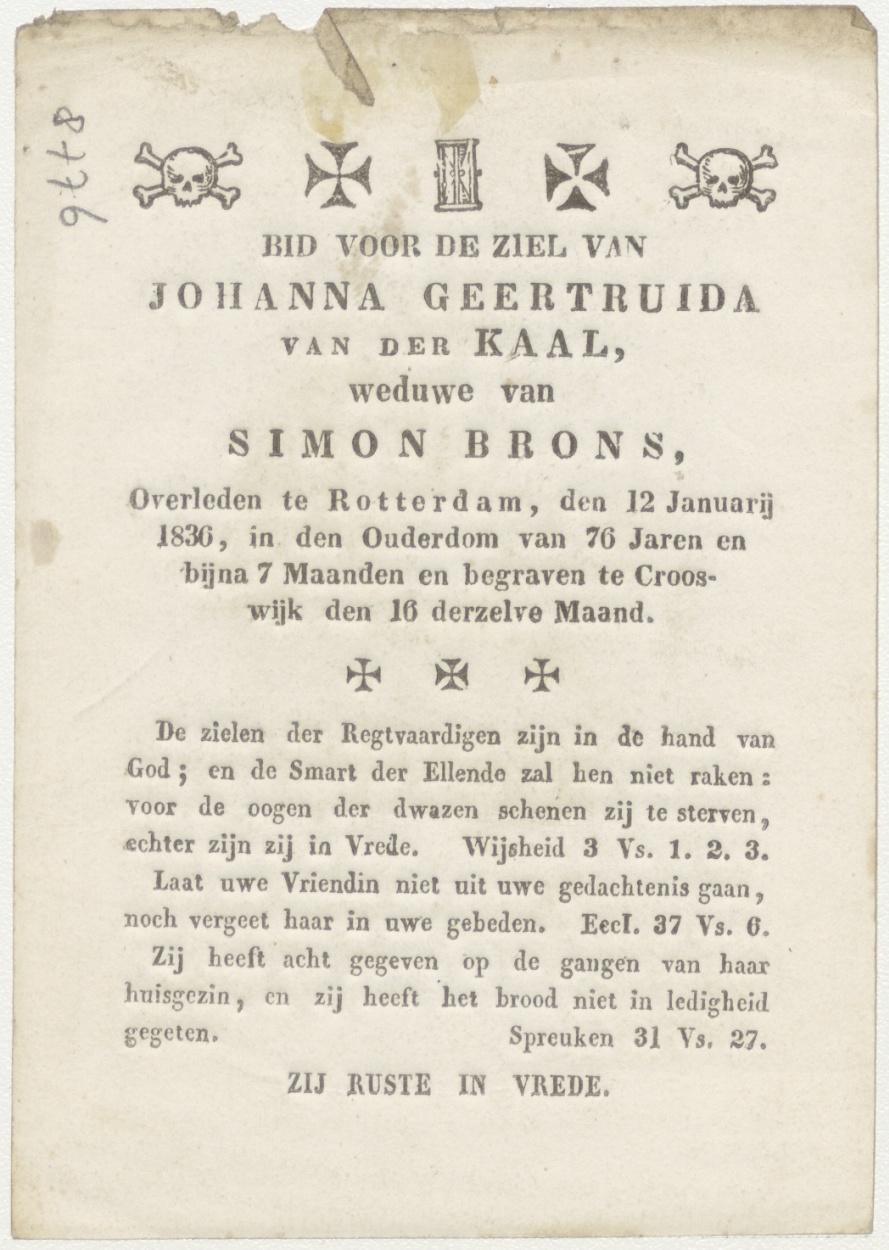 H. Hart op weg naar de hemel (Frans), kz. Bid voor ziel Van der Kaal-Brons (+1836) Rotterdam