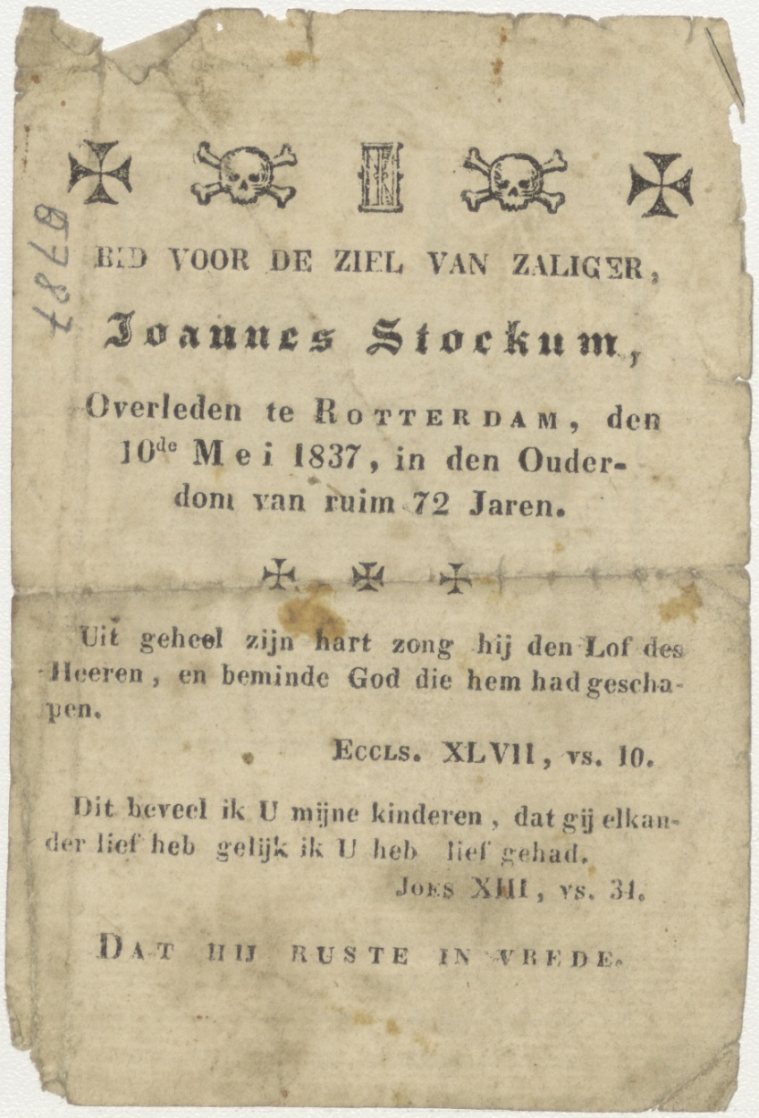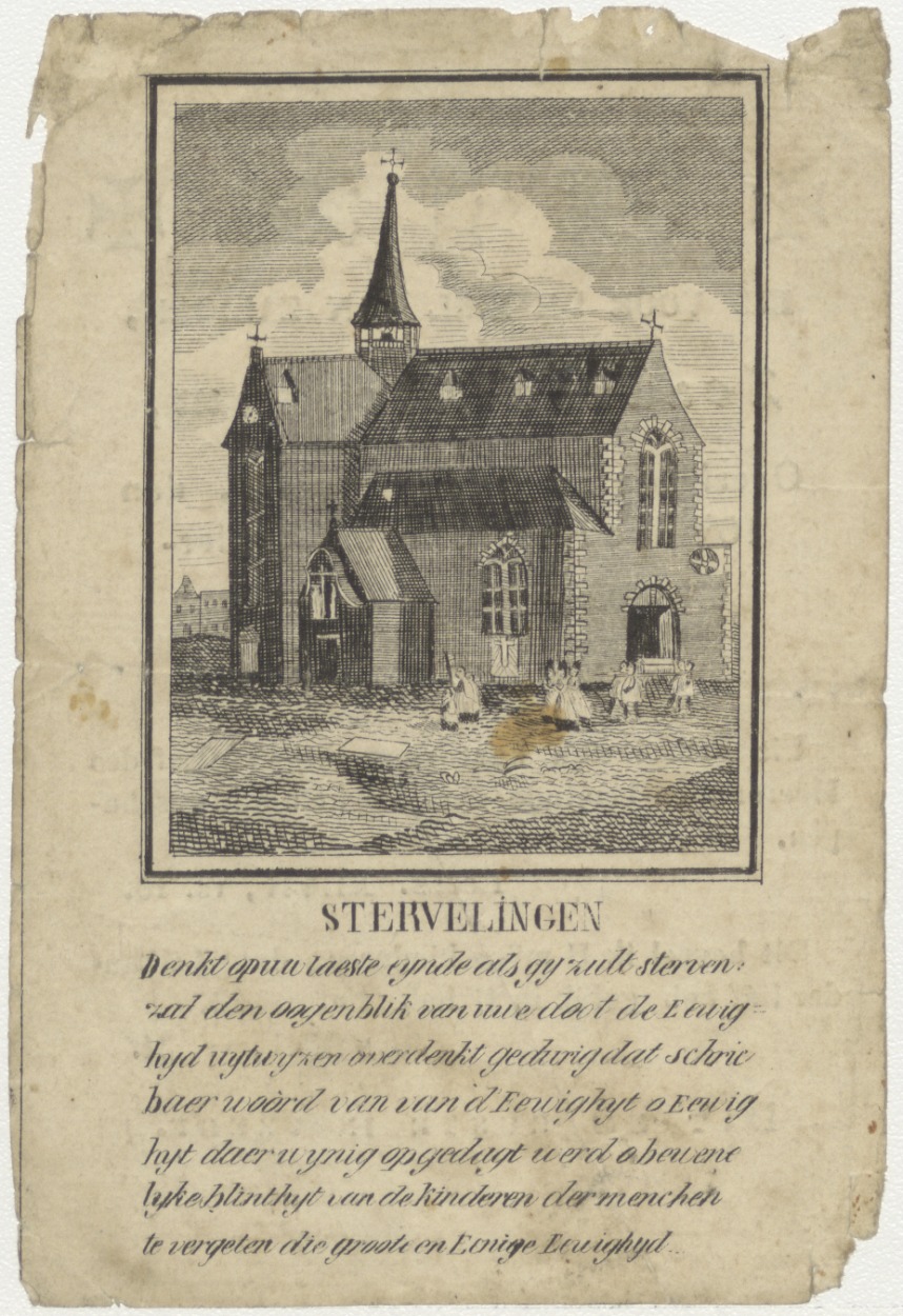 Stervelingen, kerk met uitvaart, kz. Bid voor ziel Stockum (+1837) Rotterdam