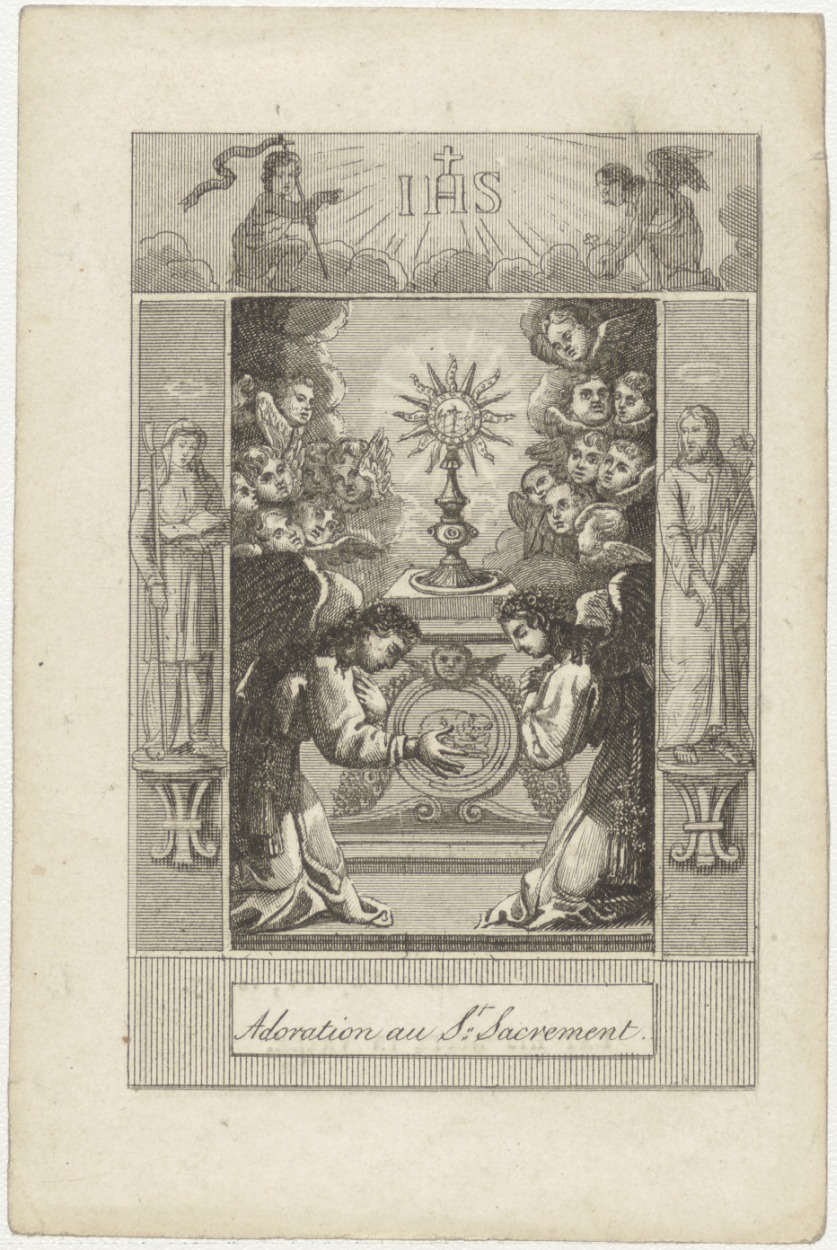 Aanbidding van het H. Sacrament (Frans), kz. Bid voor ziel Bichelberger (+1837) 's-Gravenhage