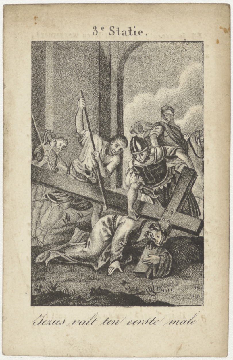 Passiescène (3e statie) Jezus valt ten eerste male, kz. Bid voor ziel Hackfoort (+1837) Utrecht