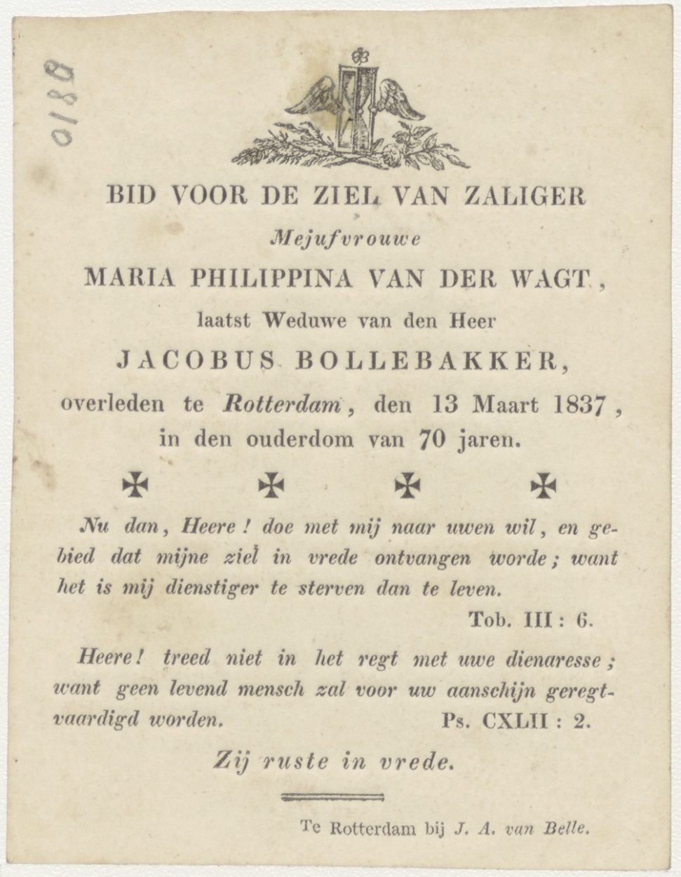 Maria, Mater Dolorosa, kz. Bid voor ziel Van der Wagt-Bollebakker (+1837) Rotterdam