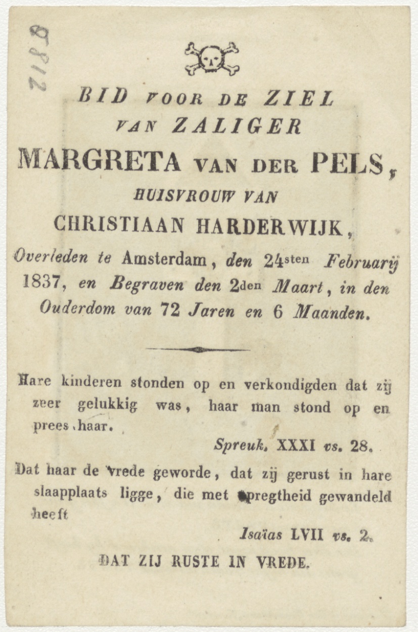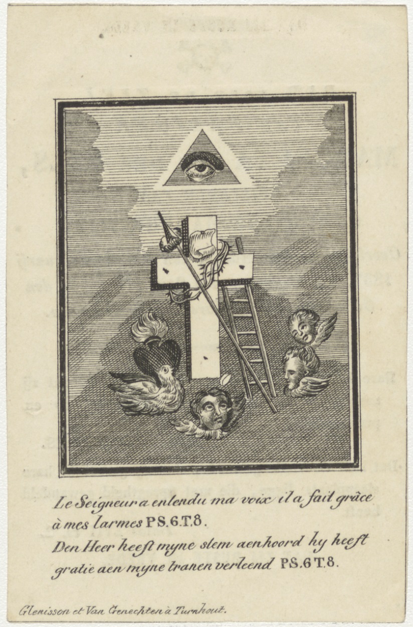 Alziend oog met kruis, den keer heeft mijne stem aangehoord..., kz. Bid voor ziel Van der Pels-Harderwijk (+1837)