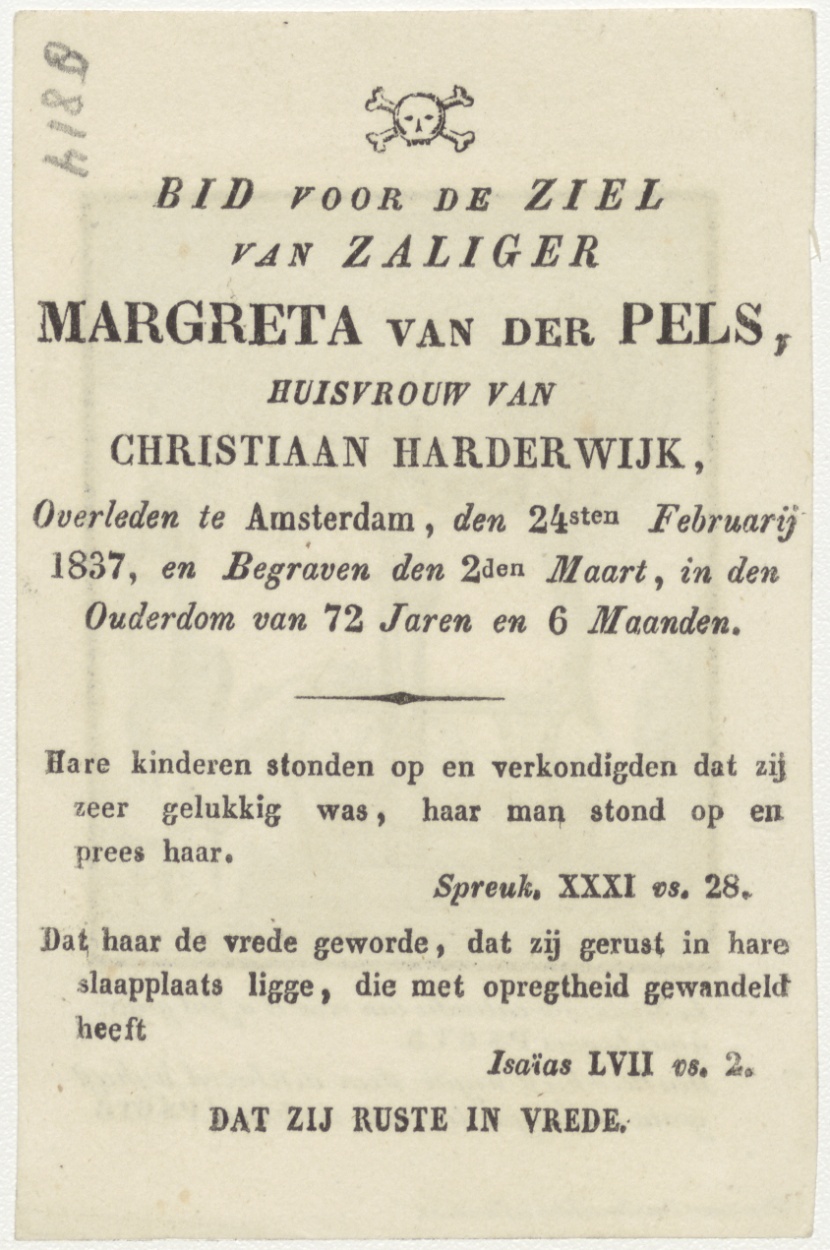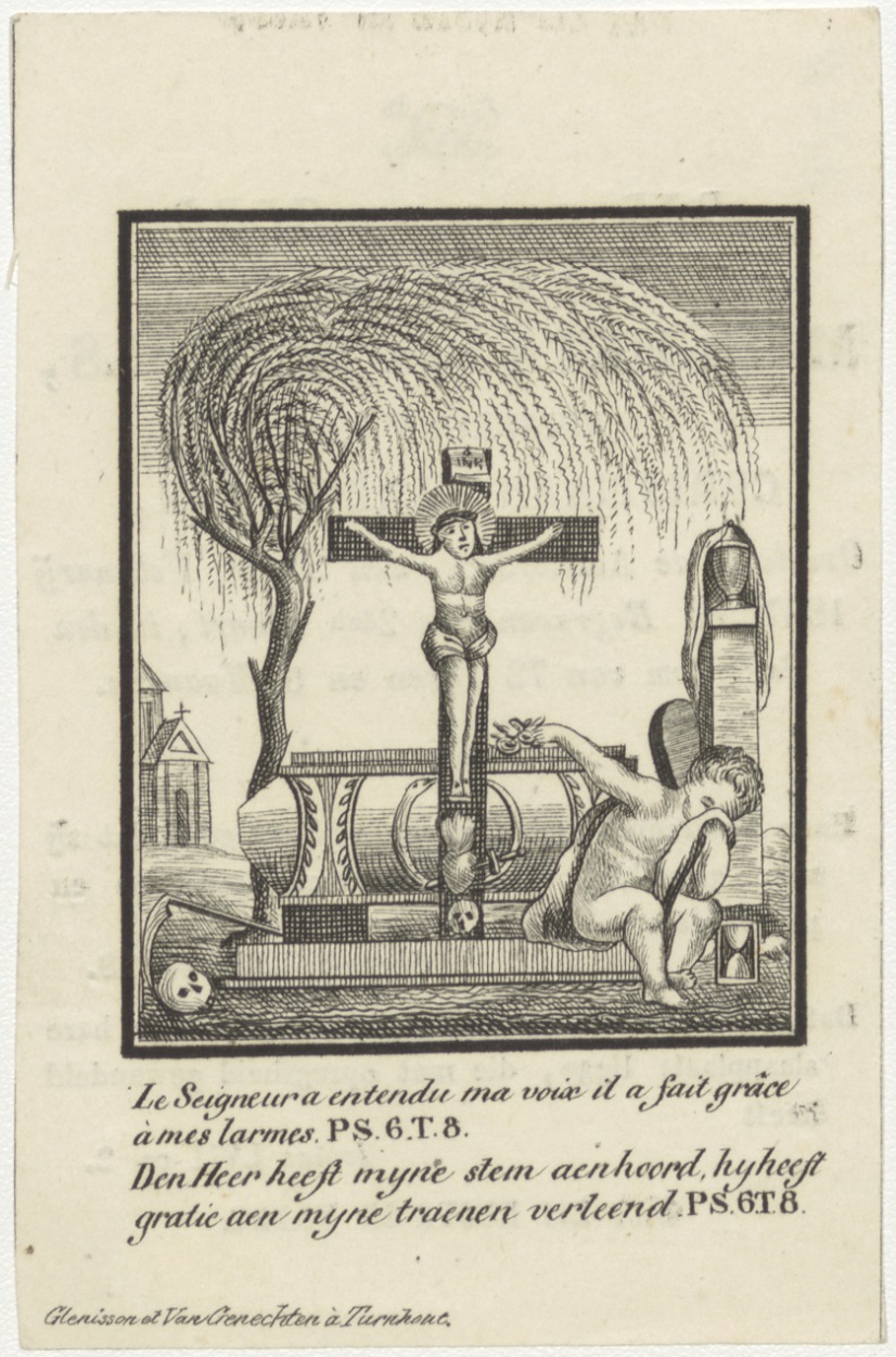 Kruis op sarcofaag, den heer heeft mijne stem aanhoord..., kz. Bid voor ziel Van der Pels-Harderwijk (+1837)