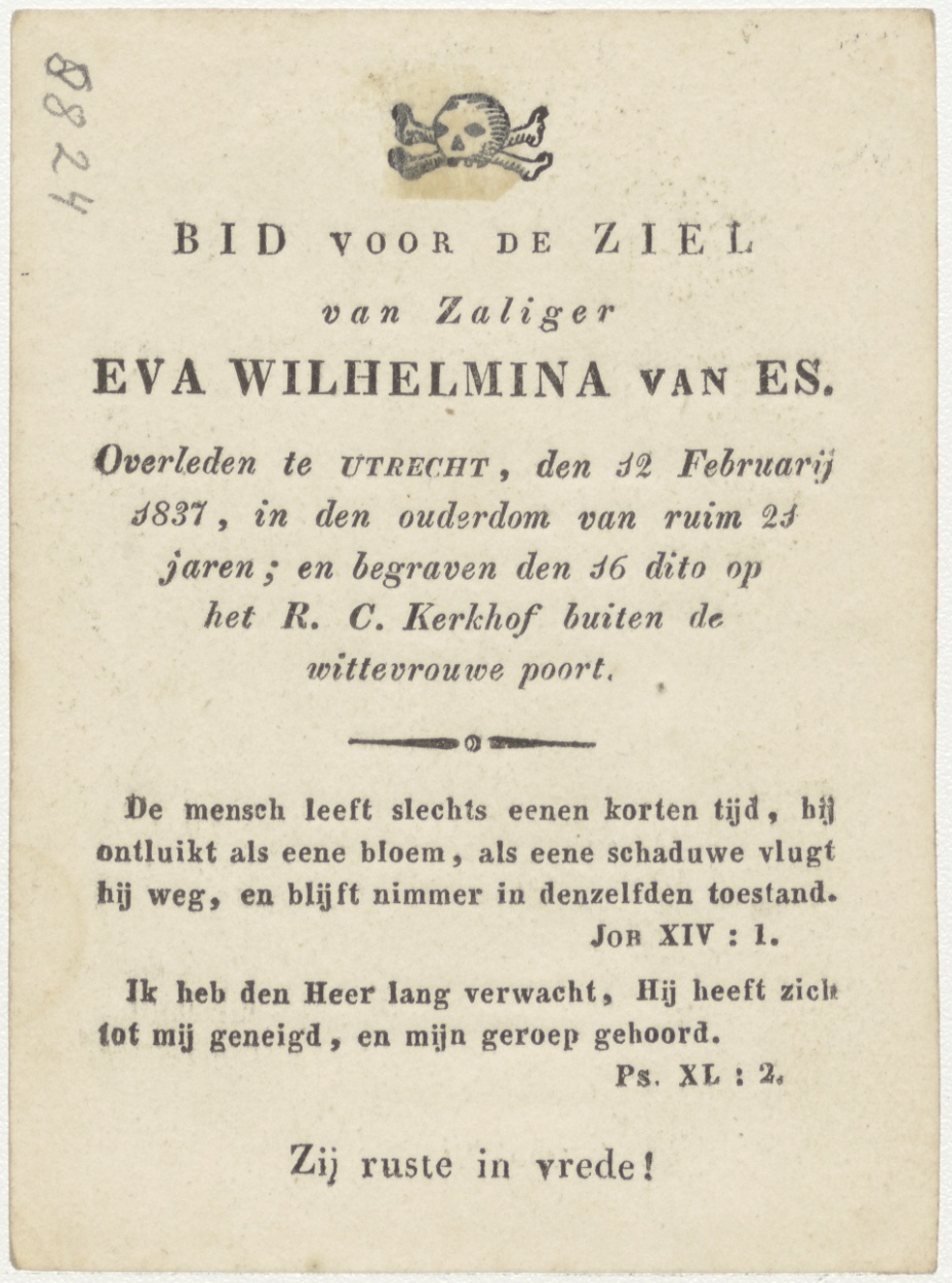 Kind met kan en zweep (Frans), kz. Bid voor ziel Van Es (+1837) Utrecht