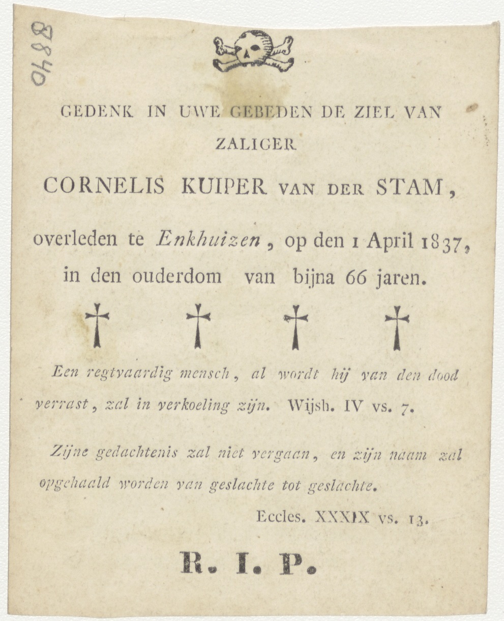 H. Ludovicus van Gonzagua, kz. Bid voor ziel Kuiper van der Stam (+1837) Enkhuizen