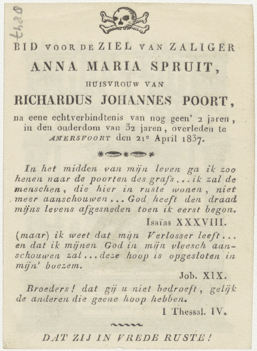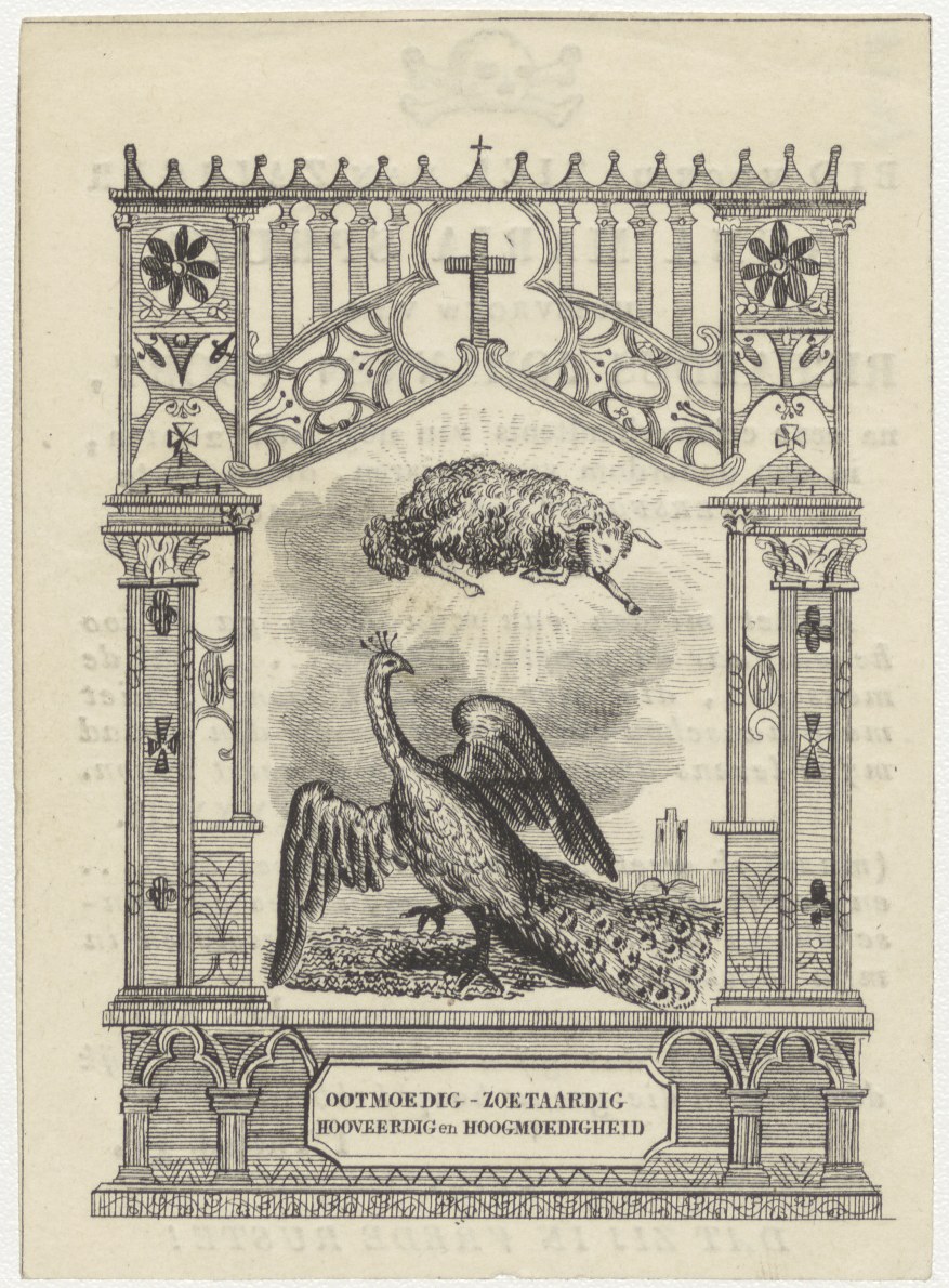 Pauw met lam, ootmoedigheid-zoetaardigheid, kz. Bid voor ziel Spruit-Poort (+1837) Amersfoort