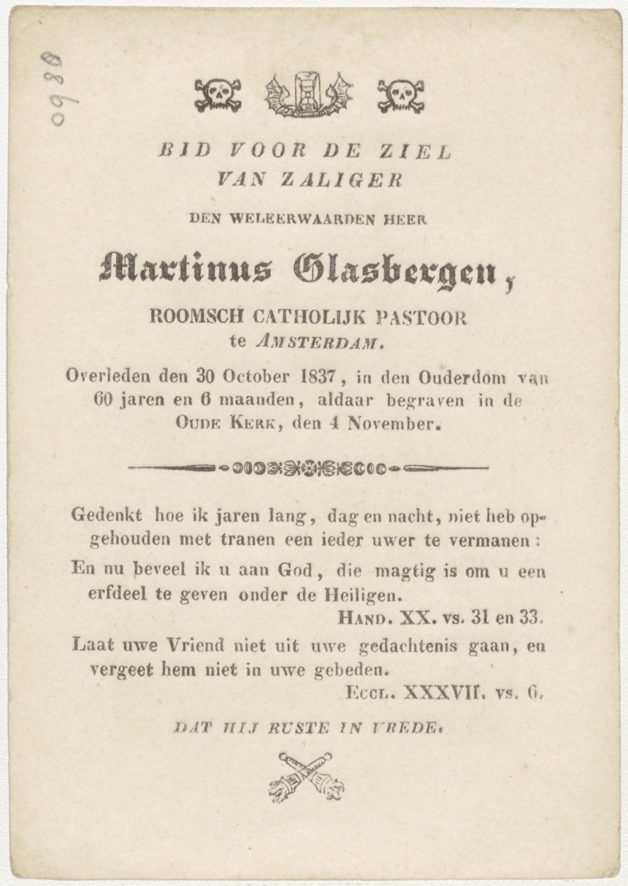 Passiescène (13e statie) Jezus wordt van het kruis afgelaten, kruisafneming, kz. Religieus; bid voor ziel Martinus Glasbergen (+1837) pastoor te Amsterdam
