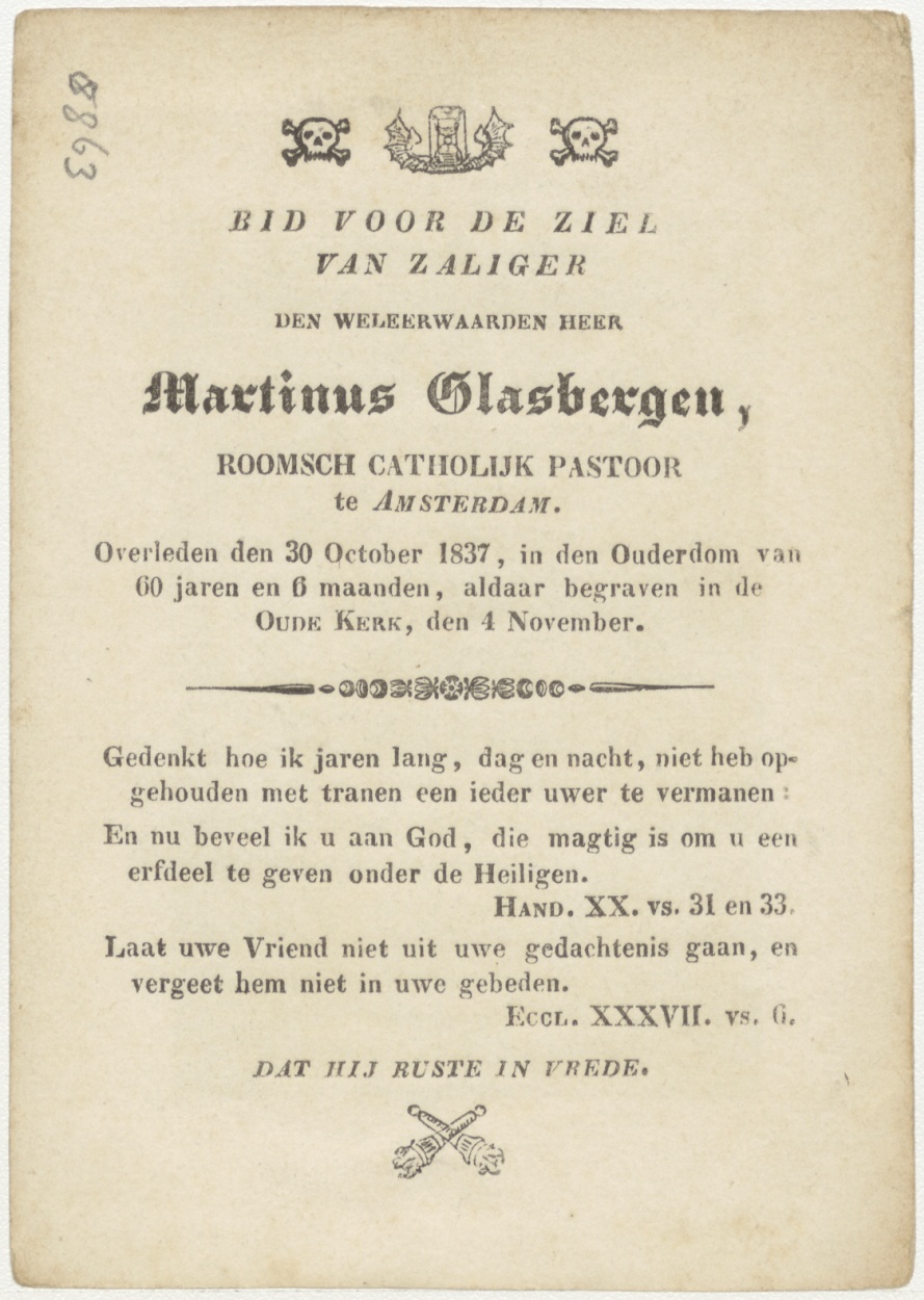 Kruis op grafsteen, de kruisweg, kz. Religieus; bid voor ziel Martinus Glasbergen (+1837) Amsterdam