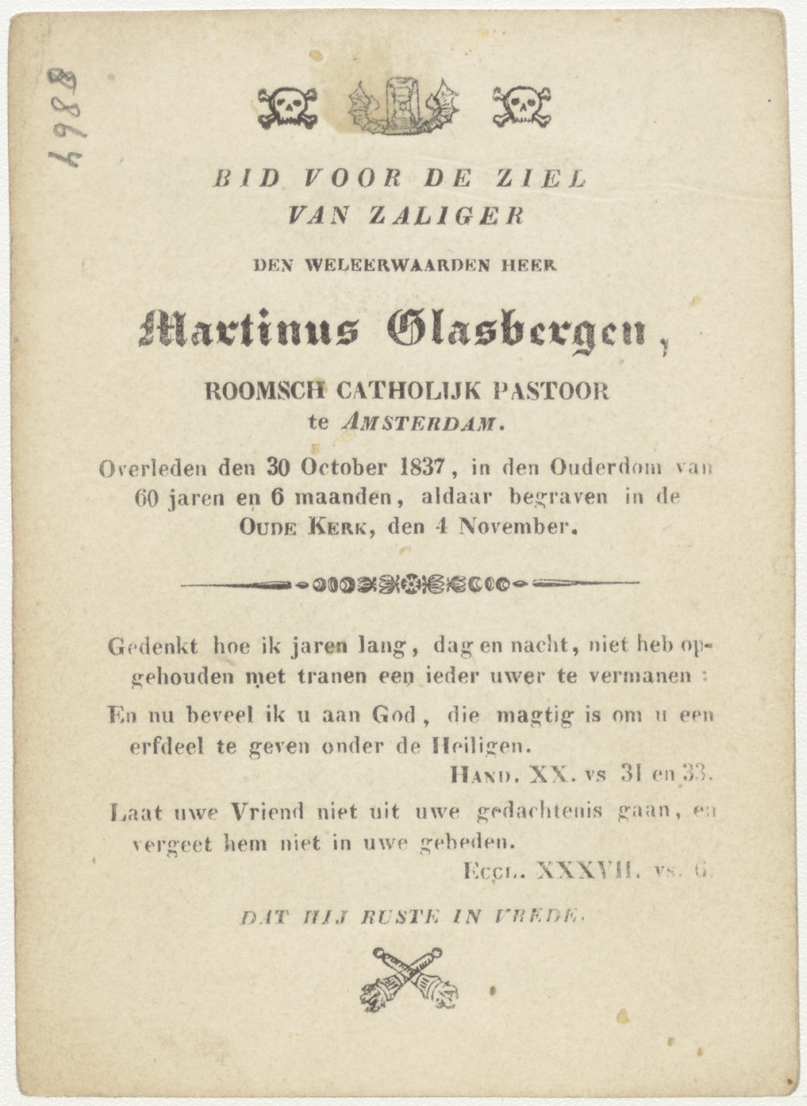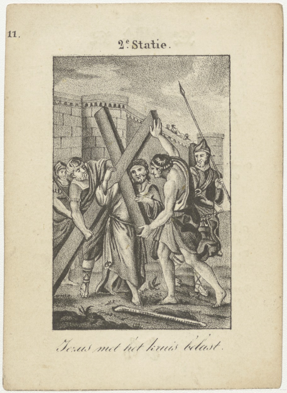 Passiescène (2e statie) Jezus met het kruis belast, kz. Religieus; bid voor ziel Martinus Glasbergen (+1837) Amsterdam