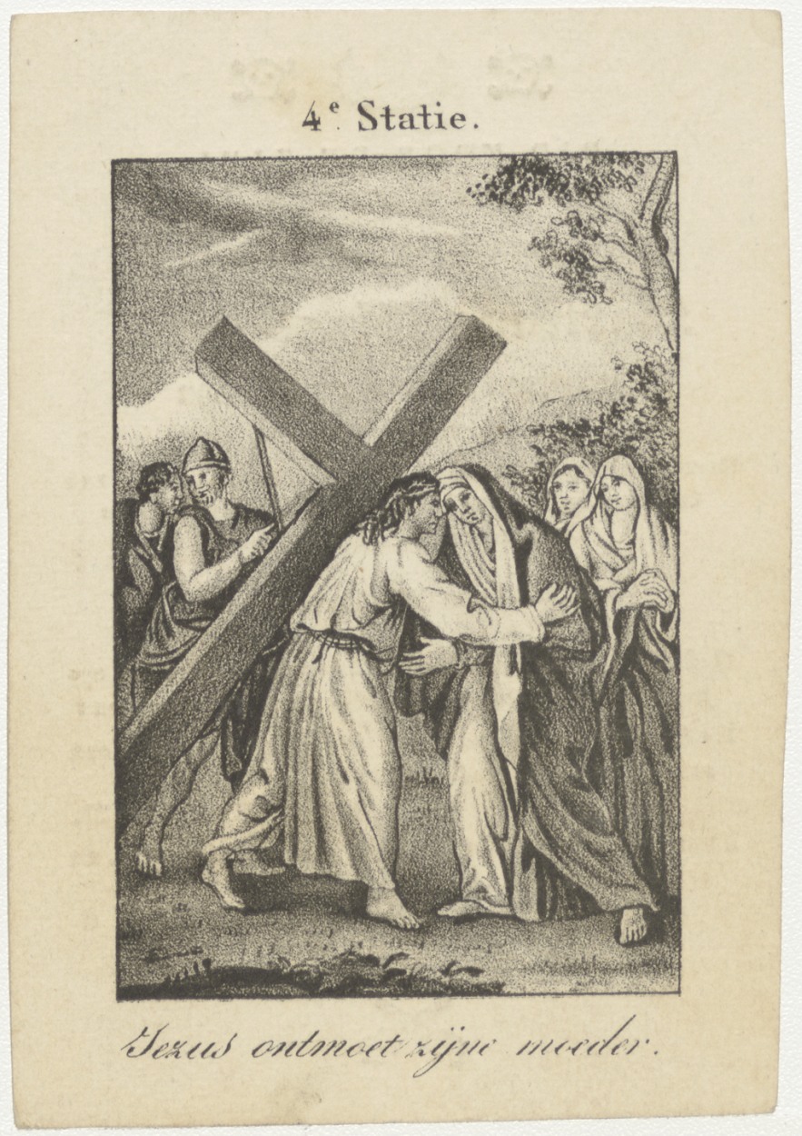 Passiescène (4e statie) Jezus ontmoet zijn moeder, kz. Religieus; bid voor ziel Martinus Glasbergen (+1837) Amsterdam