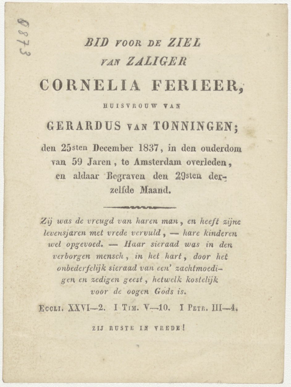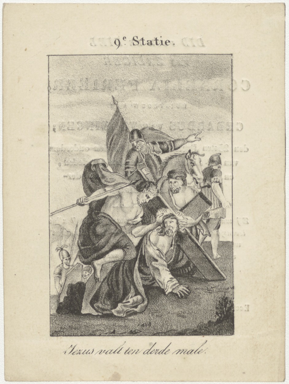 Passiescène (9e statie) Jezus valt ten derde male, kz. Bid voor ziel Ferrier-Van Tonningen (+1837) Amsterdam
