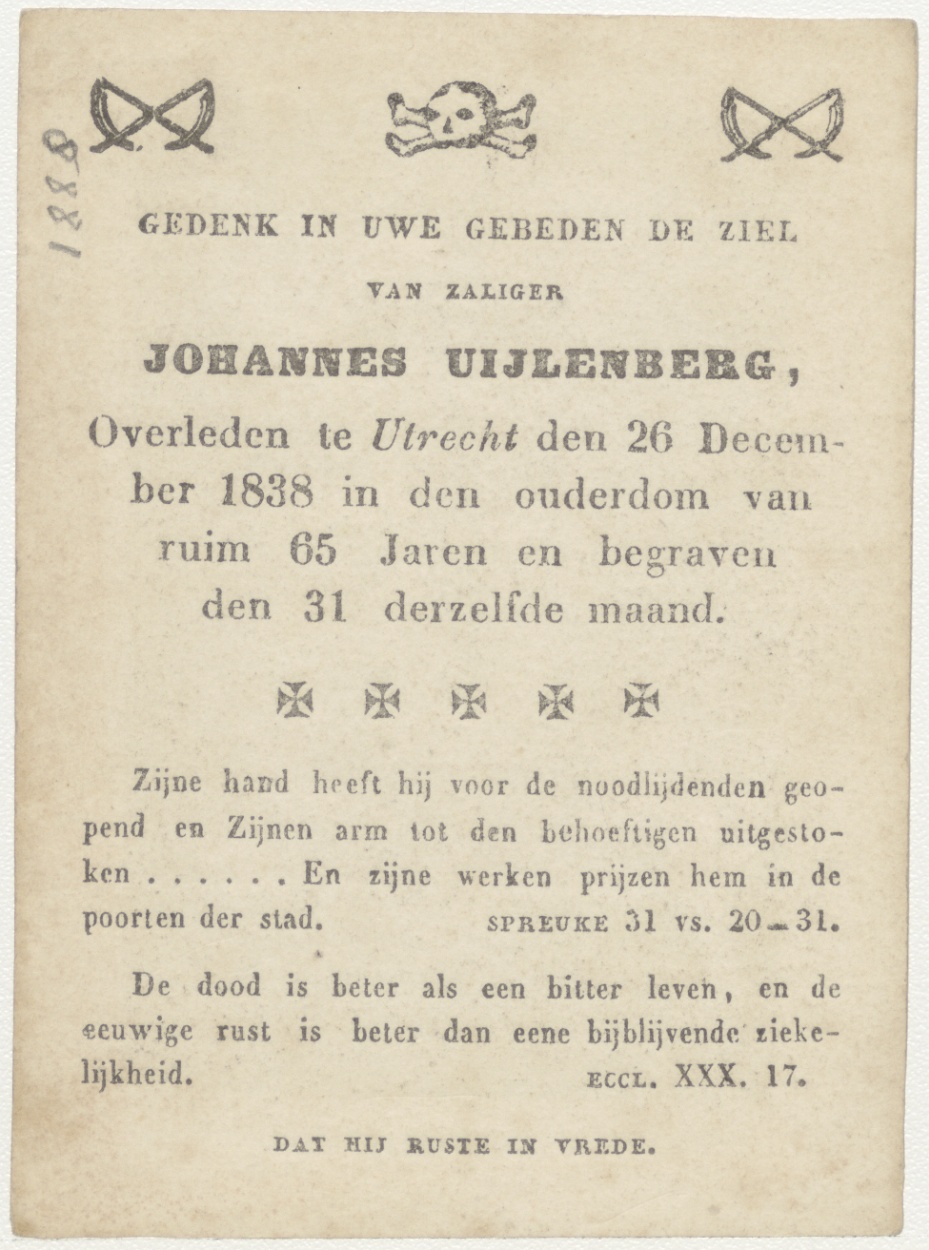 H. Kruis, kz. Bid voor ziel Uylenberg (+1838) Utrecht