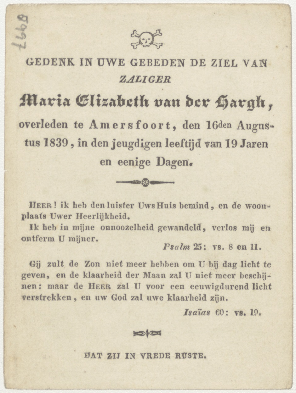 H. Gregorius, kz. Bid voor ziel Van der Hargh (+1839) Amersfoort