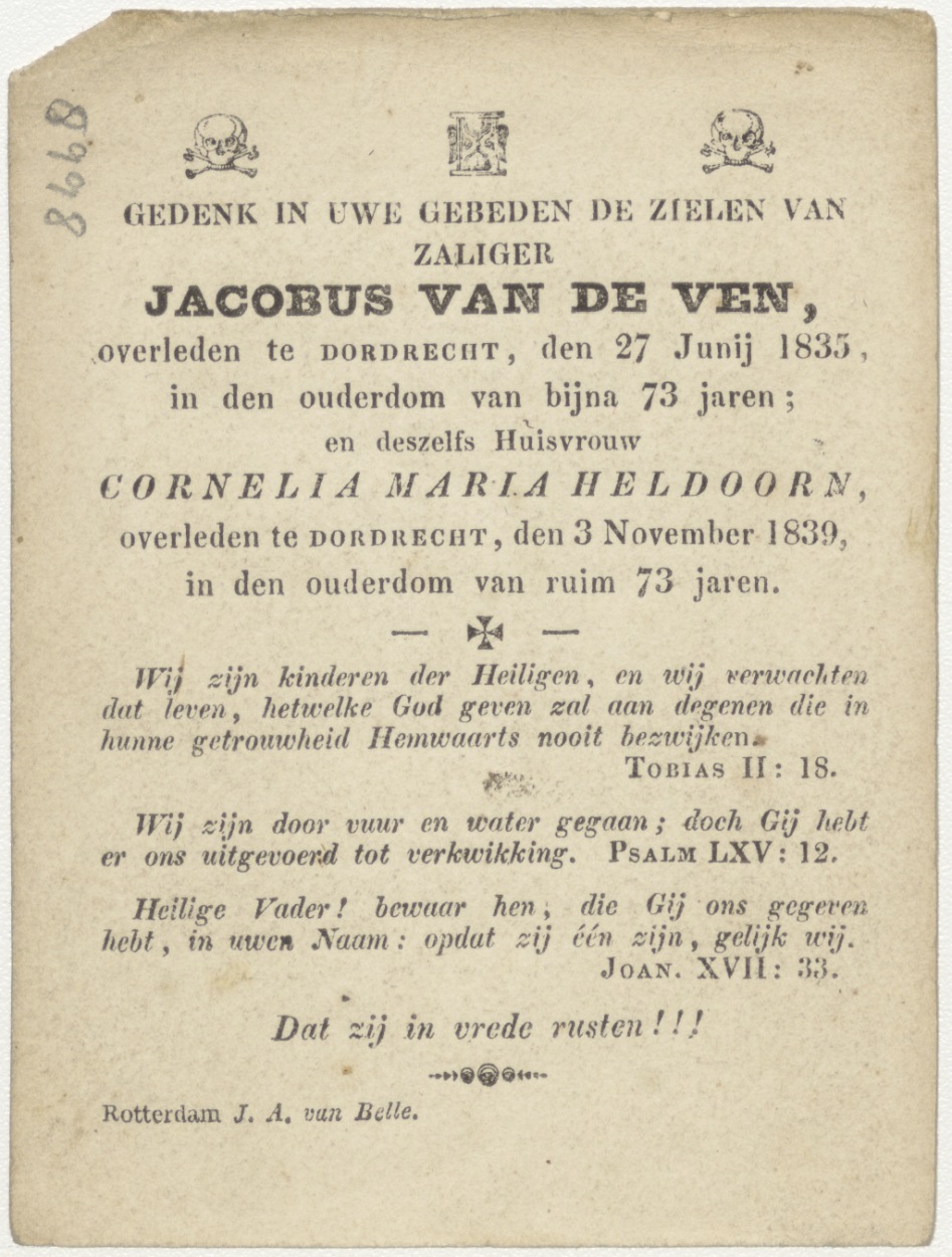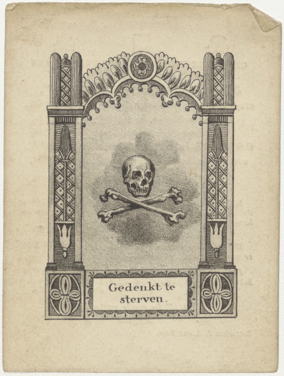 Schedel, gedenkt te sterven, kz. Bid voor ziel Van de Ven-Heldoorn (+1839) Dordrecht