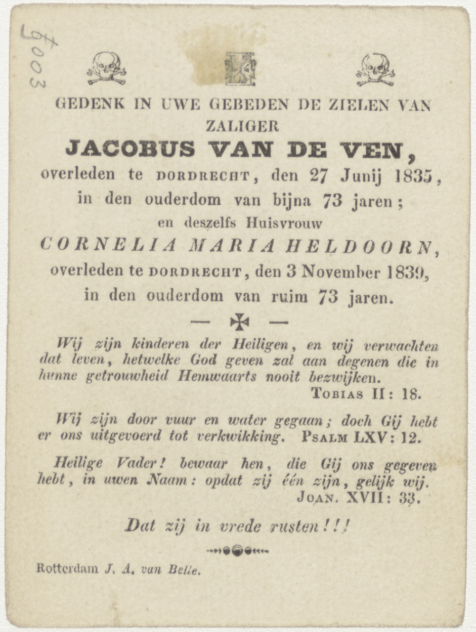 Christus wordt in het gelegd, kz. Bid voor ziel Van de Ven-Heldoorn (+1839) Dordrecht