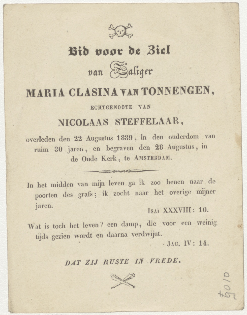 Christus valt ten tweede male, kz. Bid voor ziel Van Tonnengen-Steffelaar (+1839) Amsterdam