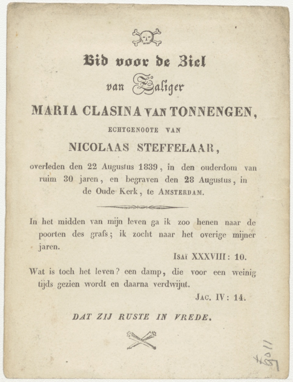 Christus ter dood veroordeeld, kz. Bid voor ziel Van Tonnengen-Steffelaar (+1839) Amsterdam