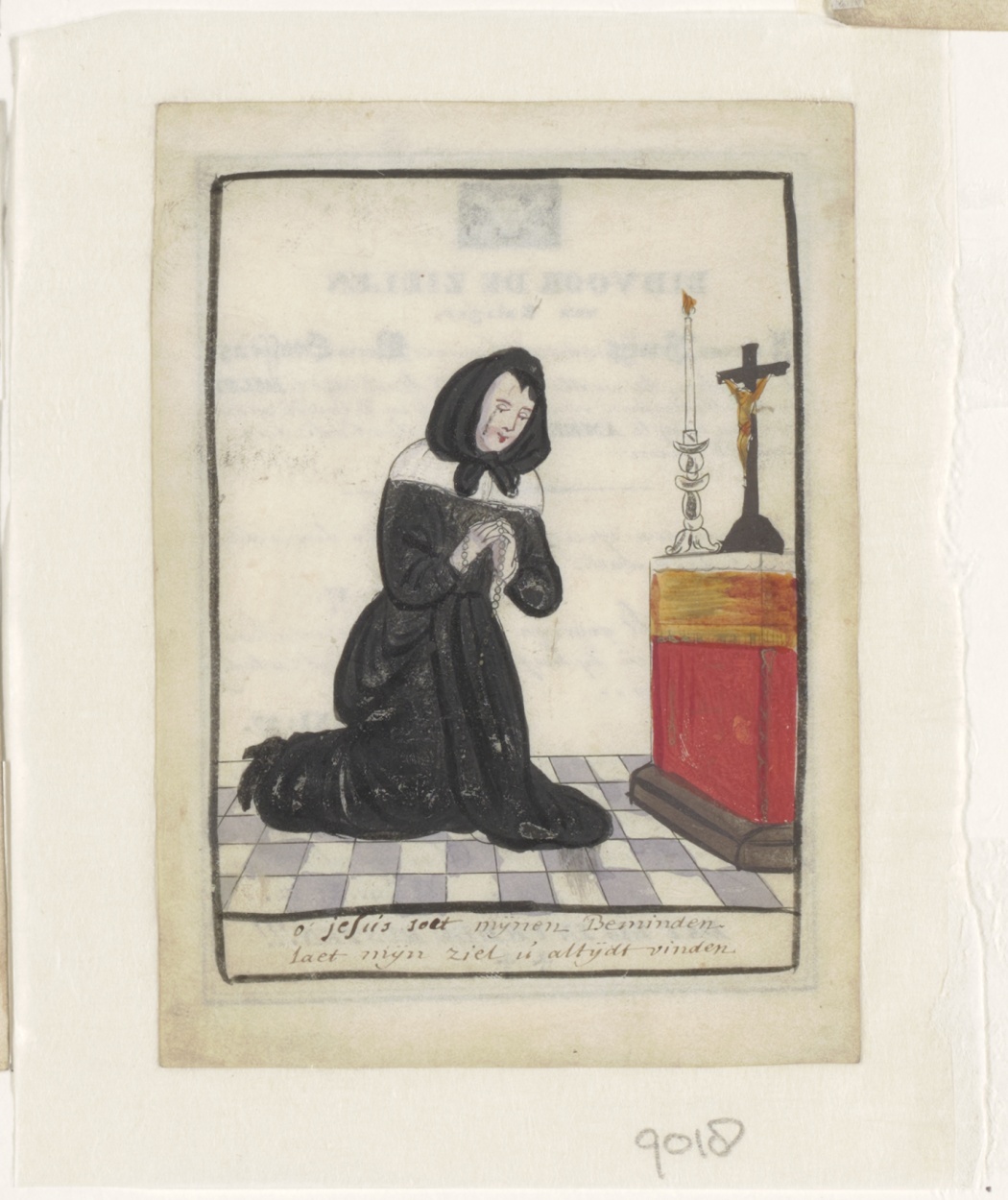 Klopje voor altaar, ingekleurd, kz. Bid voor ziel Butzen (+1839) 's-Gravenhage