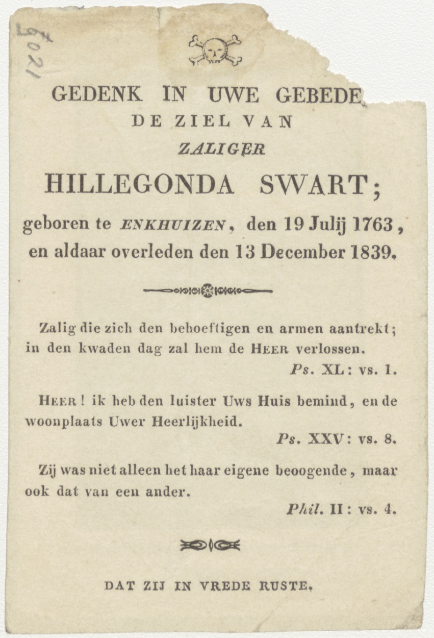 Kruis op grafzerk, o zalig kruis onder uwe schaduwe hoop en ruste ik, kz. Bid voor ziel Swart (+1839) Enkhuizen