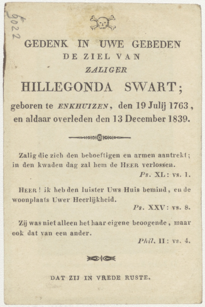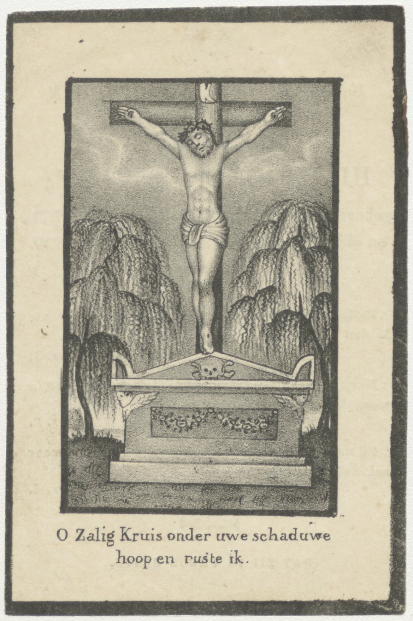Kruis op grafzerk, o zalig kruis onder uwe schaduwe hoop en ruste ik, kz. Bid voor ziel Swart (+1839) Enkhuizen
