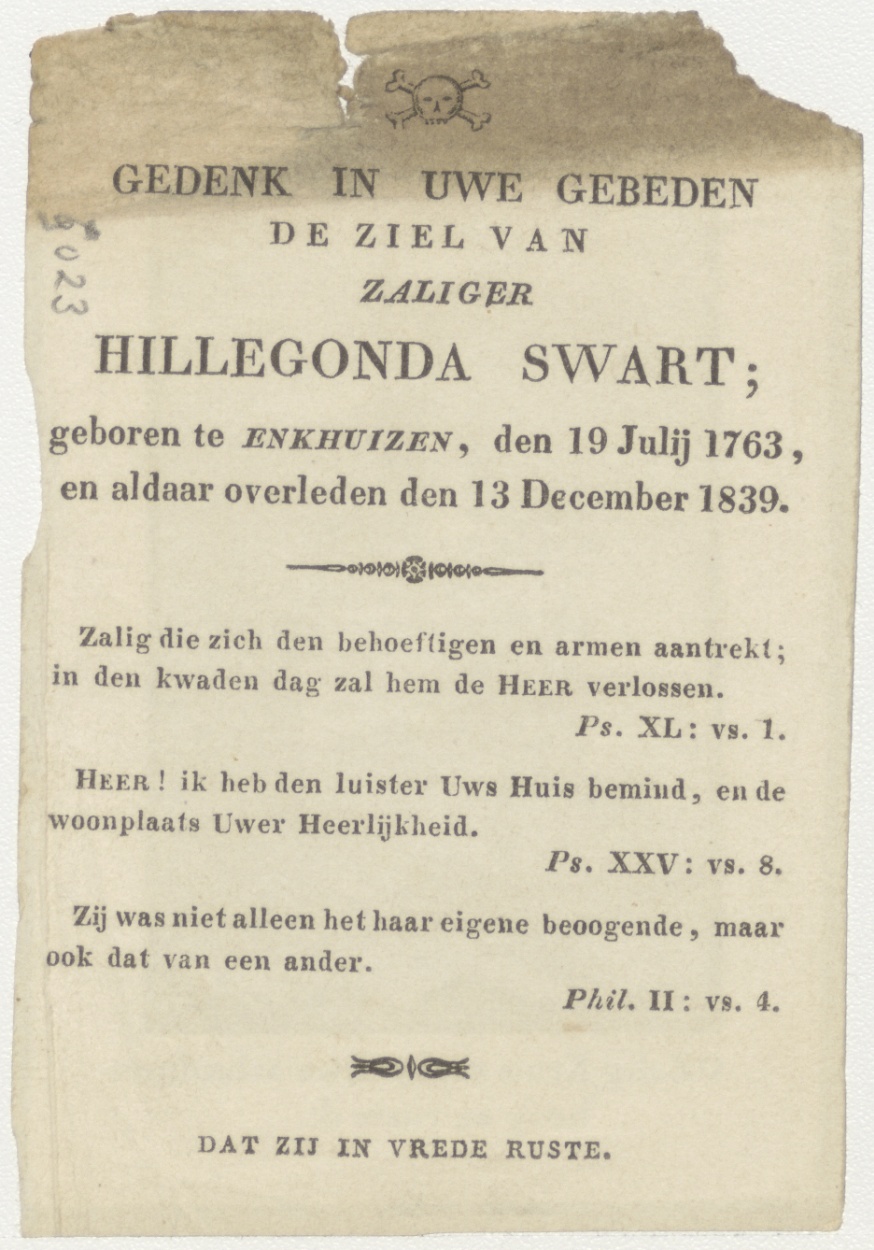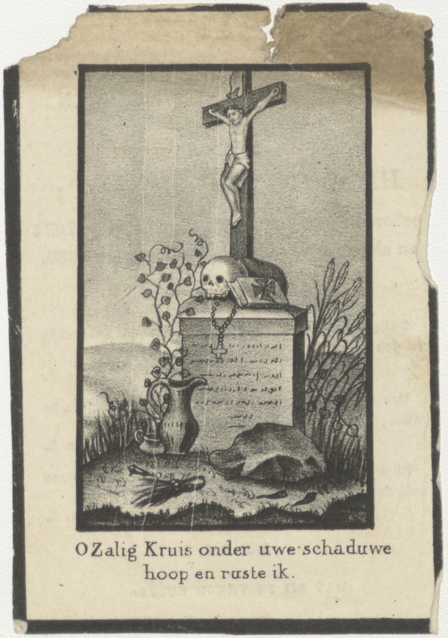 Kruis op grafzerk, o zalig kruis onder uwe schaduwe hoop en ruste ik, kz. Bid voor ziel Swart (+1839) Enkhuizen