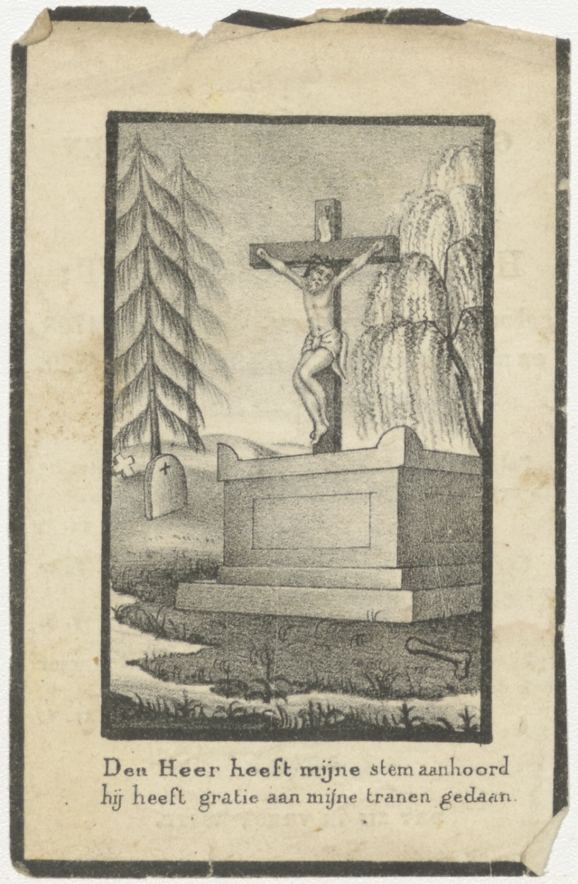 Kruis op grafzerk, den Heer heeft mijne stem aanhoord hij heeft gratie aan mijne tranen gedaan, kz. Bid voor ziel Swart (+1839) Enkhuizen