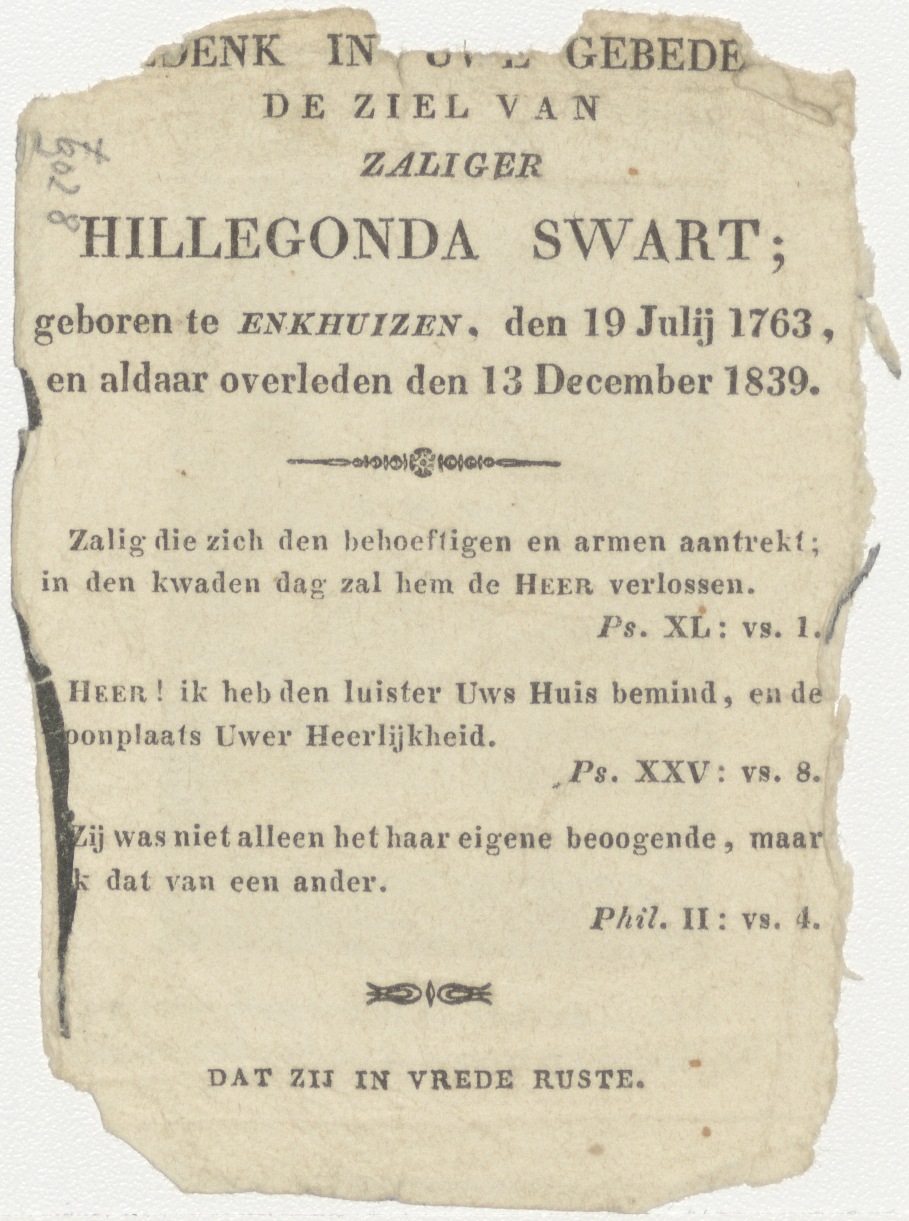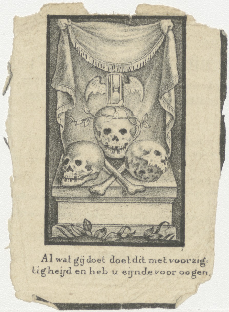 Schedels, Al wat jij doet, doet dit met voorzigtigheid..., kz. Bid voor ziel Swart (+1839) Enkhuizen