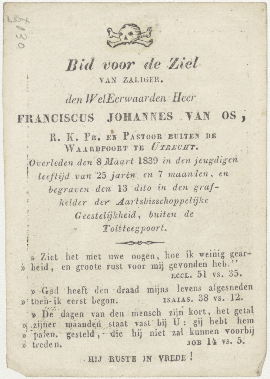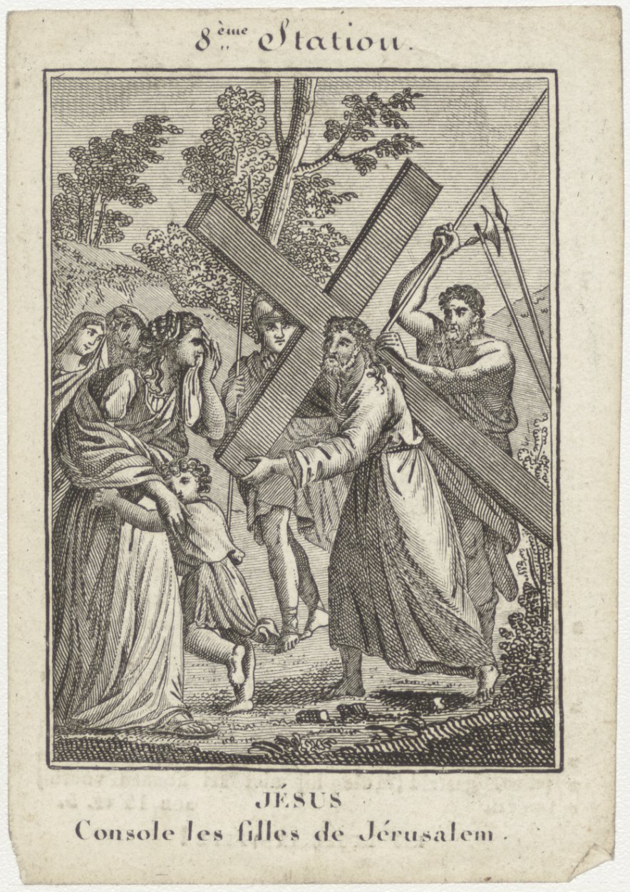 Passiescène (8e statie) Christus ontmoet de vrouwen van Jeruzalem, kz. Religieus; bid voor ziel Franciscus van Os (+1839) pastoor buiten de waardpoort te Utrecht