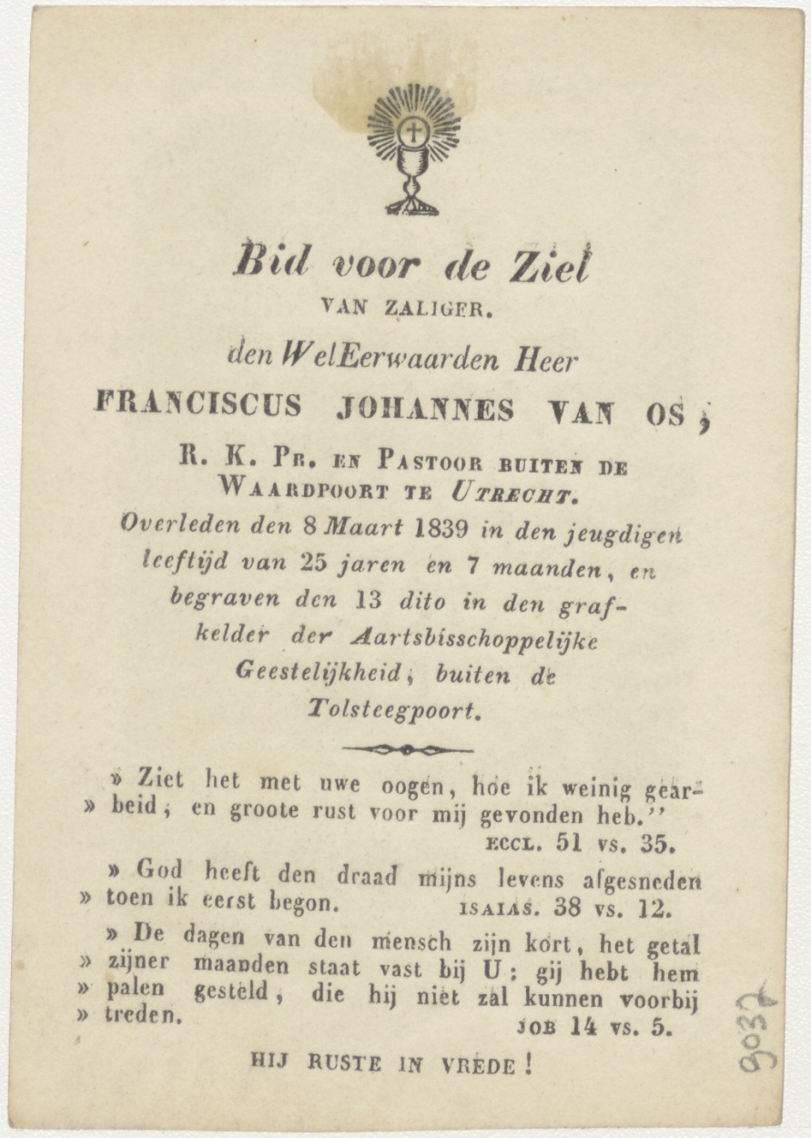 Verrijzenis van Christus, kz. Religieus; bid voor ziel Franciscus van Os (+1839) pastoor buiten de waardpoort te Utrecht