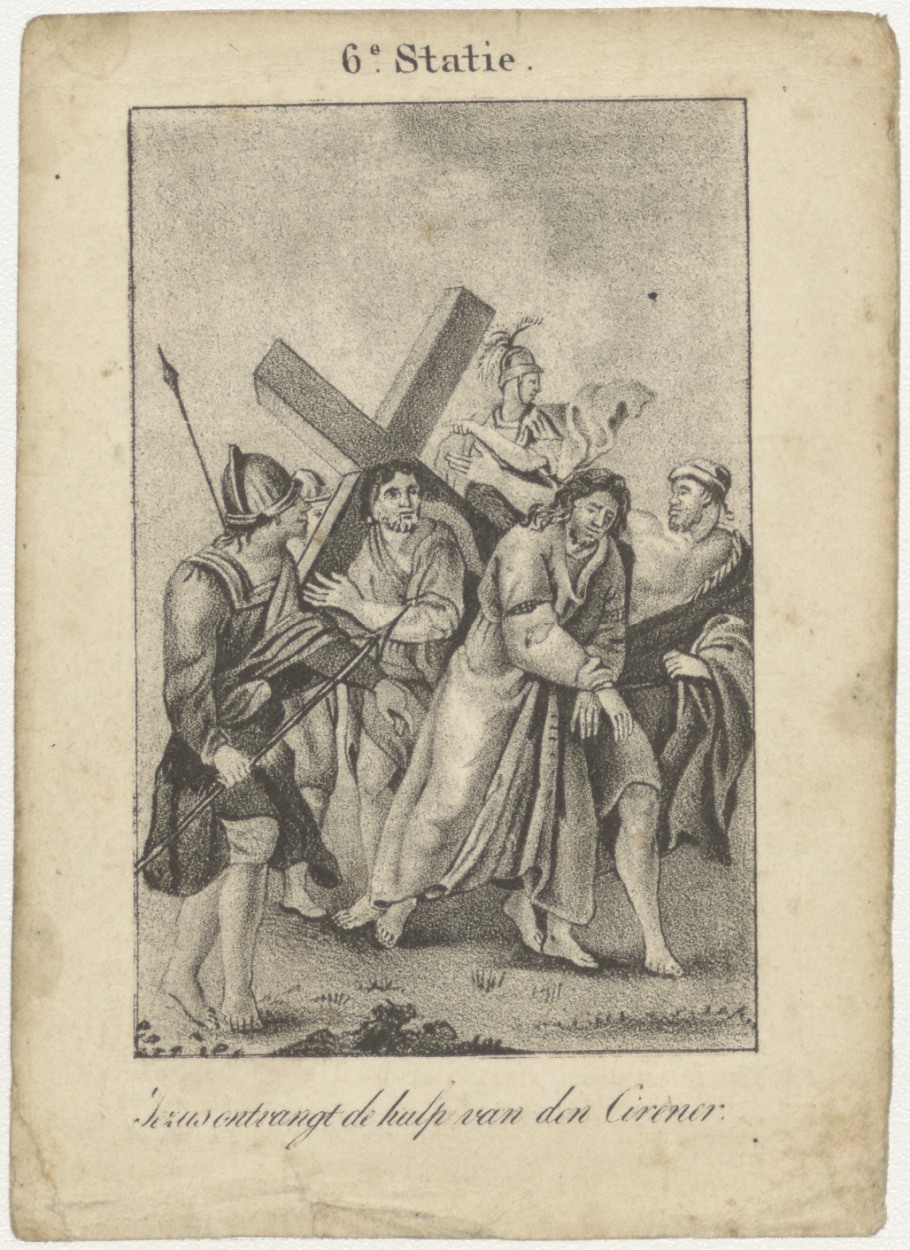 Passiescène (6e statie) Christus ontmoet Simon de Cirener, kz. Religieus; bid voor ziel Franciscus van Os (+1839) pastoor buiten de waardpoort te Utrecht