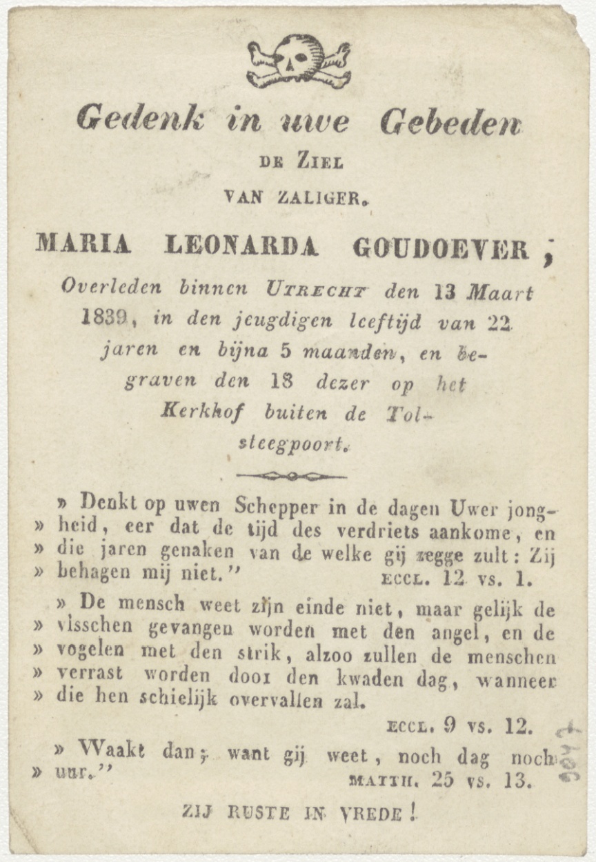 Christus sterft aan het kruis, kz. Bid voor ziel Goudoever (+1839) Utrecht