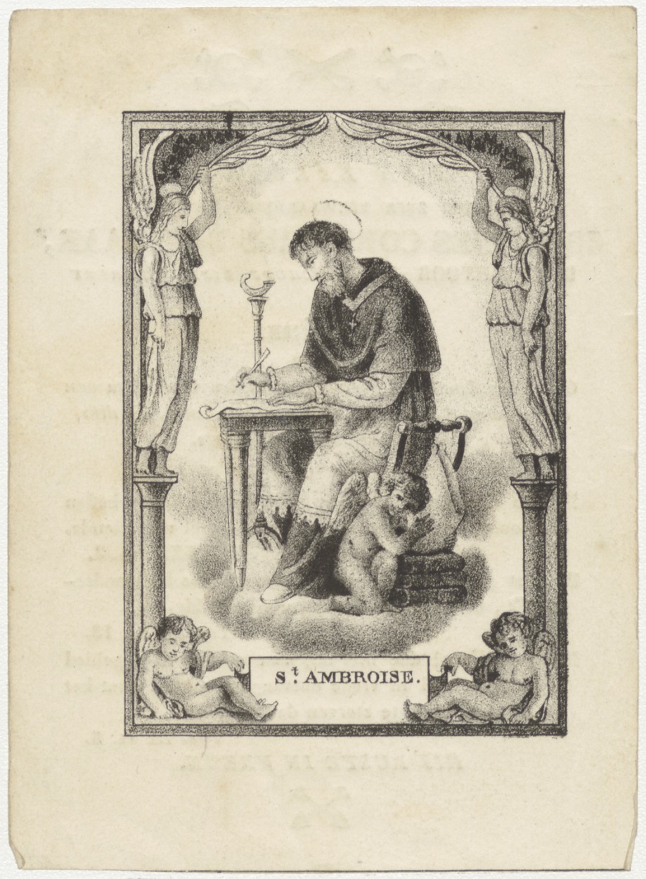 H. Ambrosius, kz. Religieus; bid voor ziel Johannes Bavelaar (+1839) pastoor bisschoppelijke clerezy te Enkhuizen