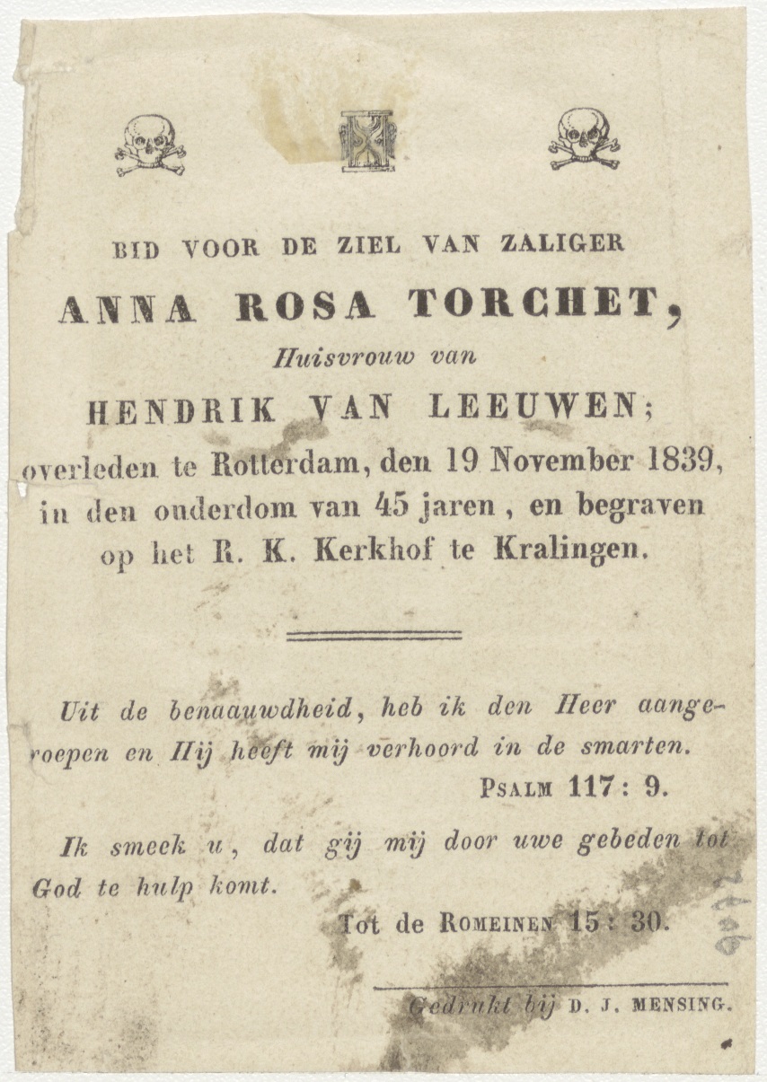 Maagd Maria, kz. Bid voor ziel Torchet-Van Leeuwen (+1839) Rotterdam