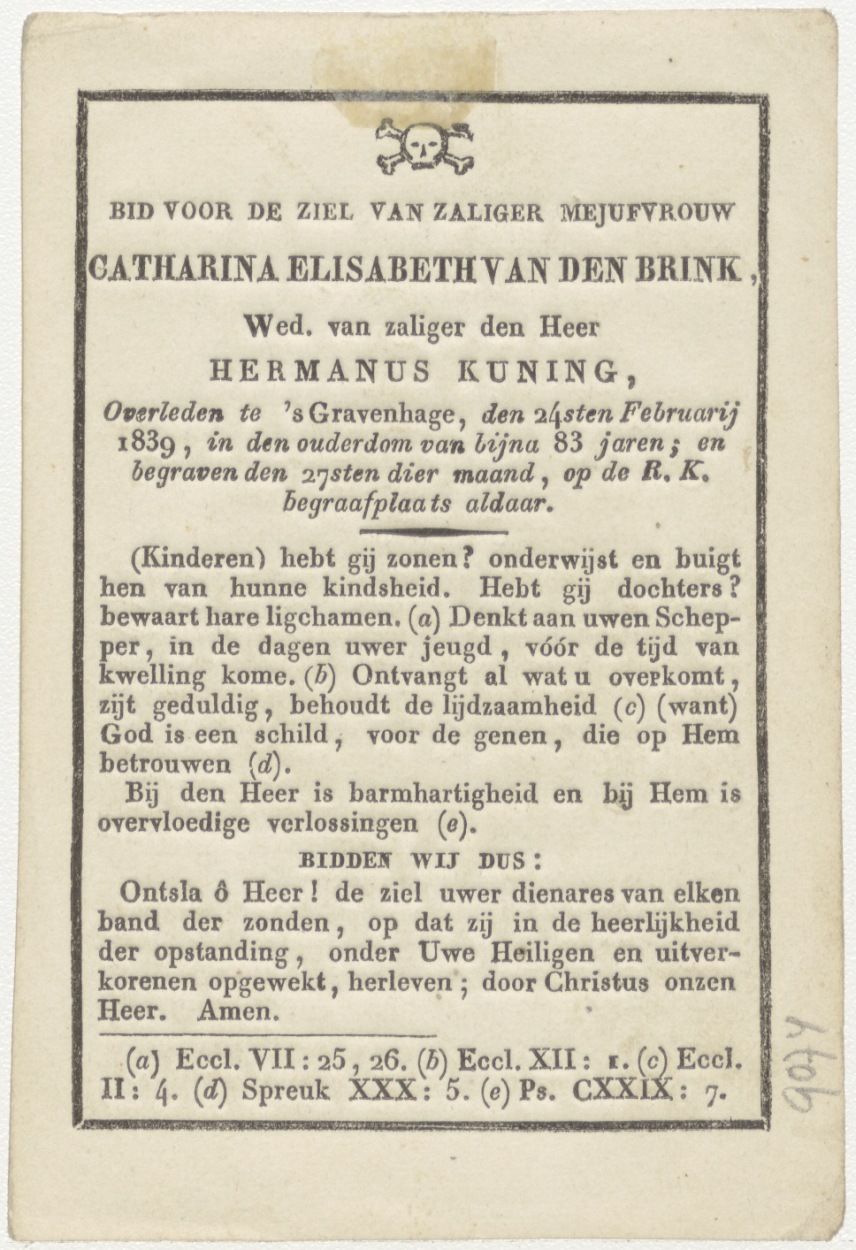 H. Vincentius a Paula, kz. Bid voor ziel Van den Brink-Kuning (+1839) 's-Gravenhage