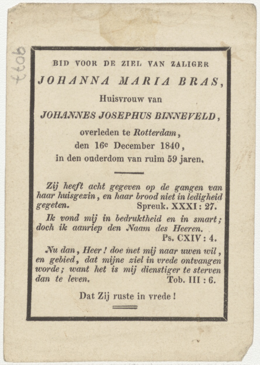 Transfiguratie van Christus, kz. Bid voor ziel Binneveld-Bras (+1840) Rotterdam