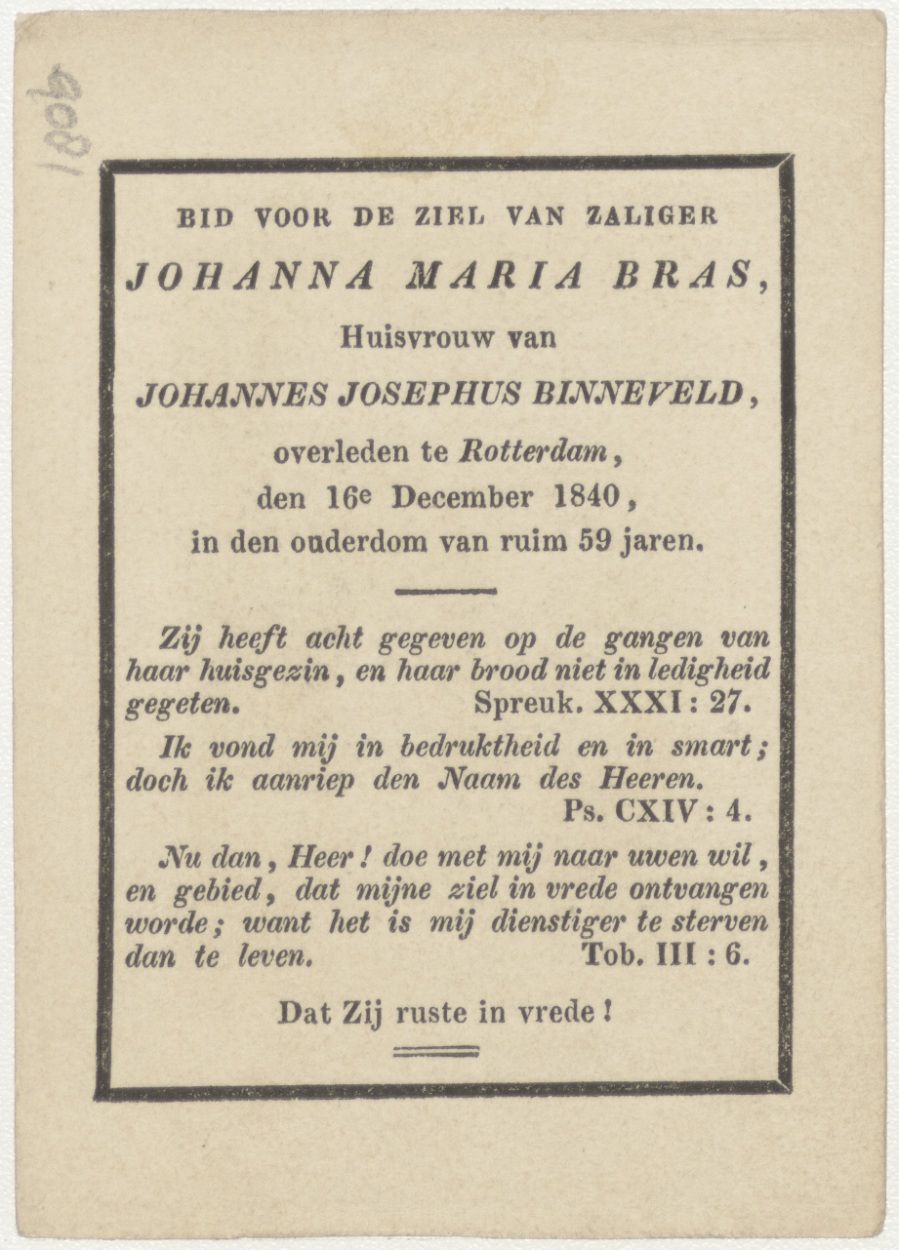 Wonder van Christus: de wonderbaarlijke broodvermenigvuldiging (Frans), kz. Bid voor ziel Binneveld-Bras (+1840) Rotterdam