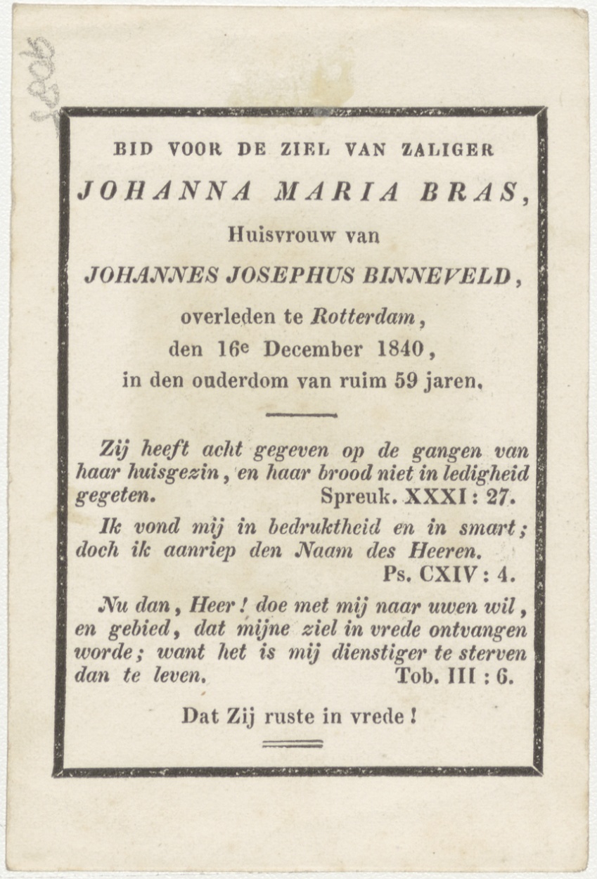 H. Sacrament: biecht (Frans), kz. Bid voor ziel Binneveld-Bras (+1840) Rotterdam