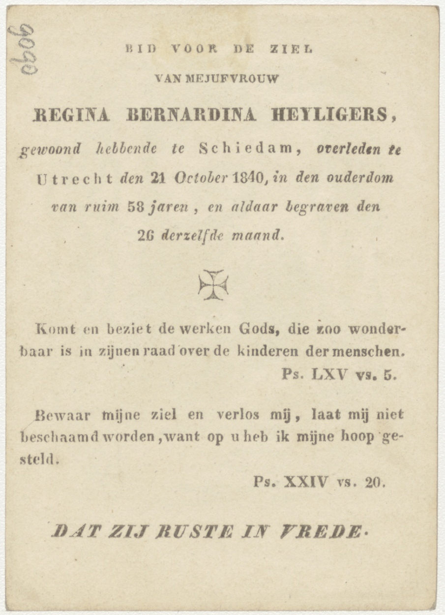 Cellospelend jongetje (Frans), kz. Bid voor ziel Heyligers (+1840) Schiedam