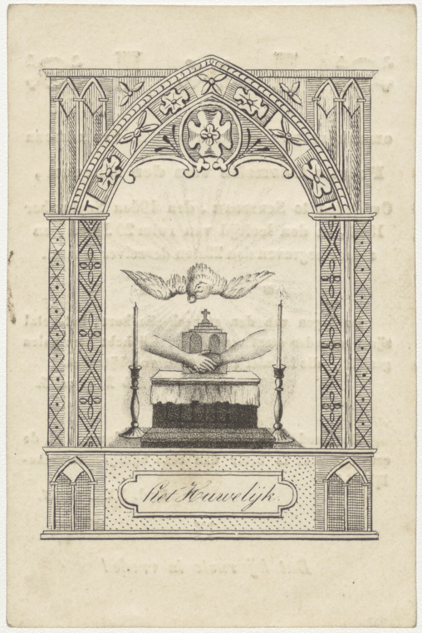 H. Sacrament: het huwelijk, kz. Bid voor ziel Van der Hoeven (+1840) Schiedam